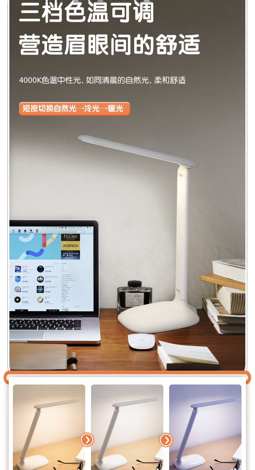 得力4325LED可充電帶屏幕臺燈(白色)1200mAh DC5V