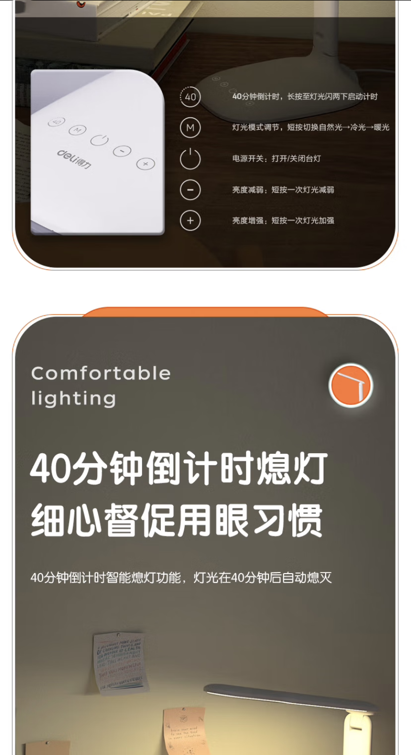 得力4301_LED觸控臺燈(香檳色)六檔可調適配器DC12V 1A