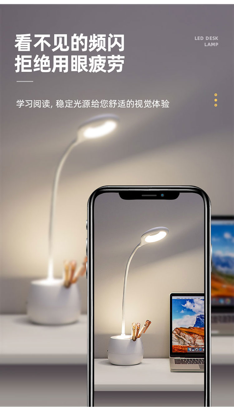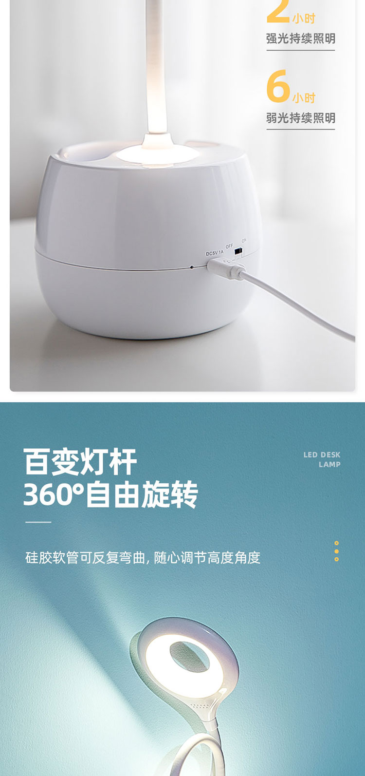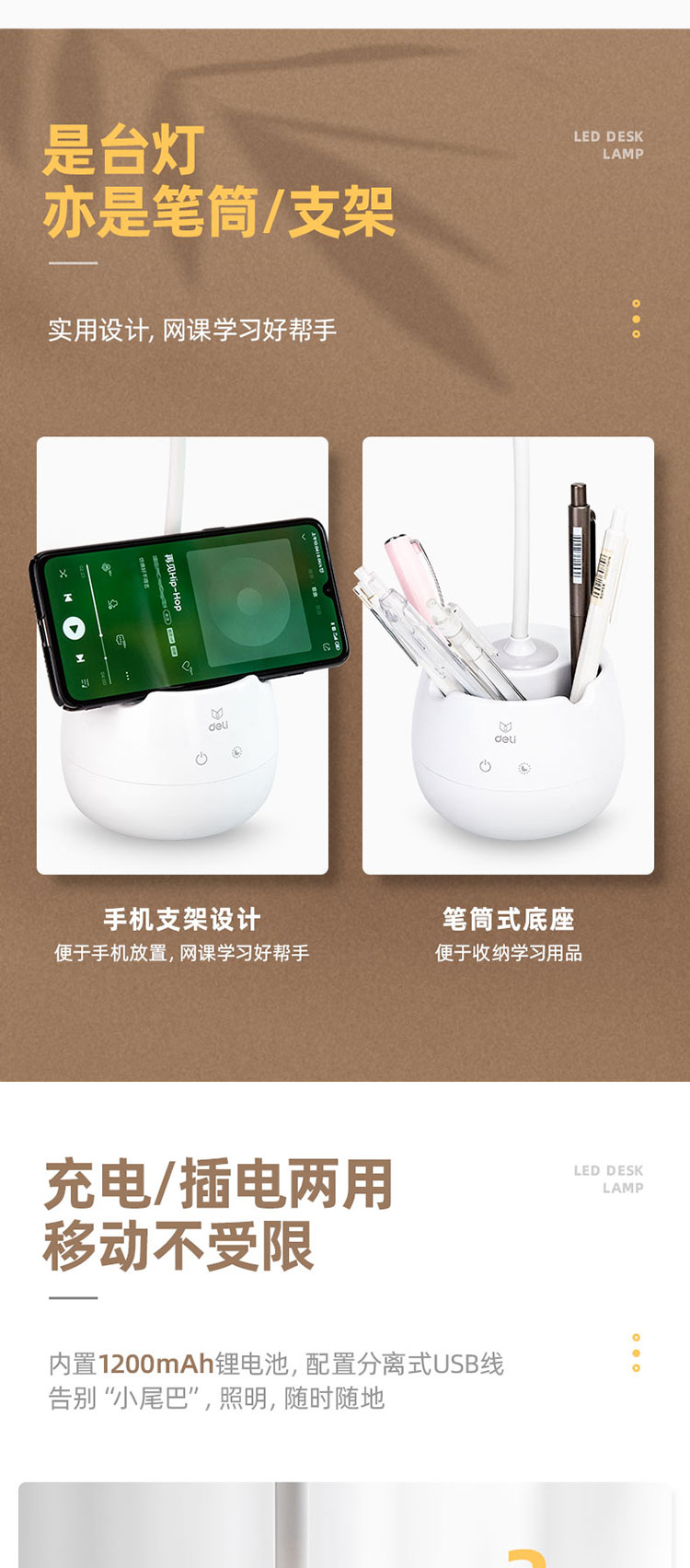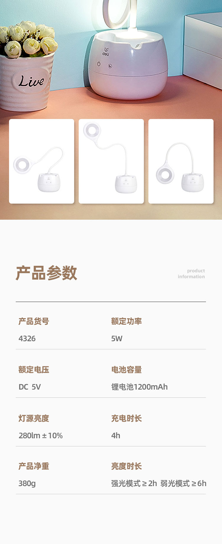 得力4325LED可充電帶屏幕臺燈(白色)1200mAh DC5V
