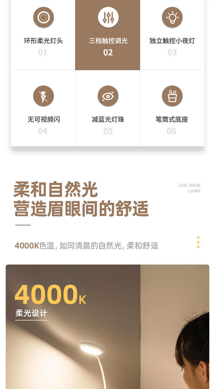 得力4301_LED觸控臺燈(香檳色)六檔可調(diào)適配器DC12V 1A