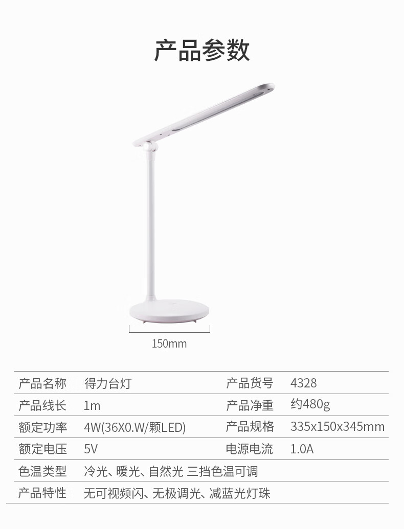 得力4301_LED觸控臺燈(香檳色)六檔可調適配器DC12V 1A
