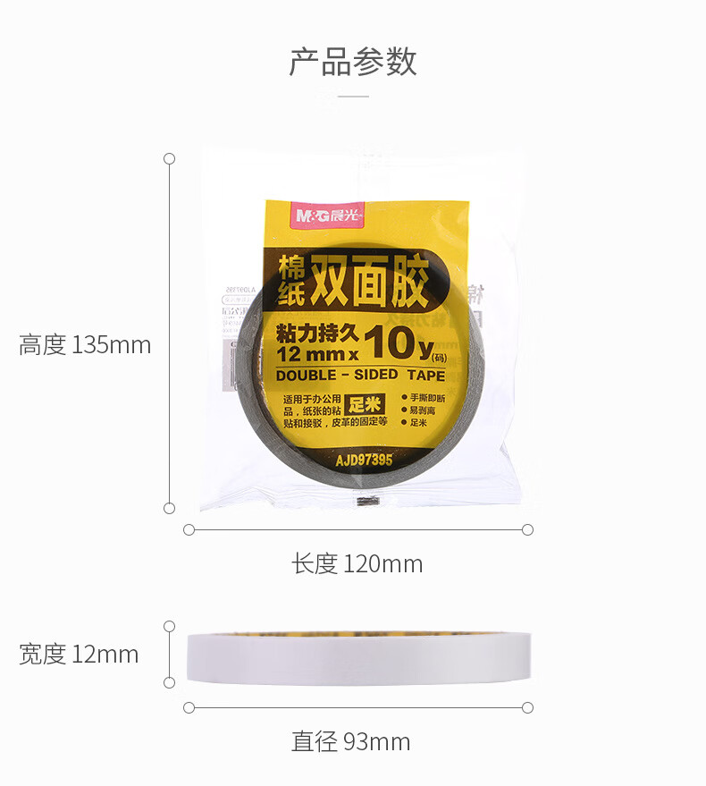 晨光雙面棉紙膠帶12mm*10y(單卷)AJD97395*24