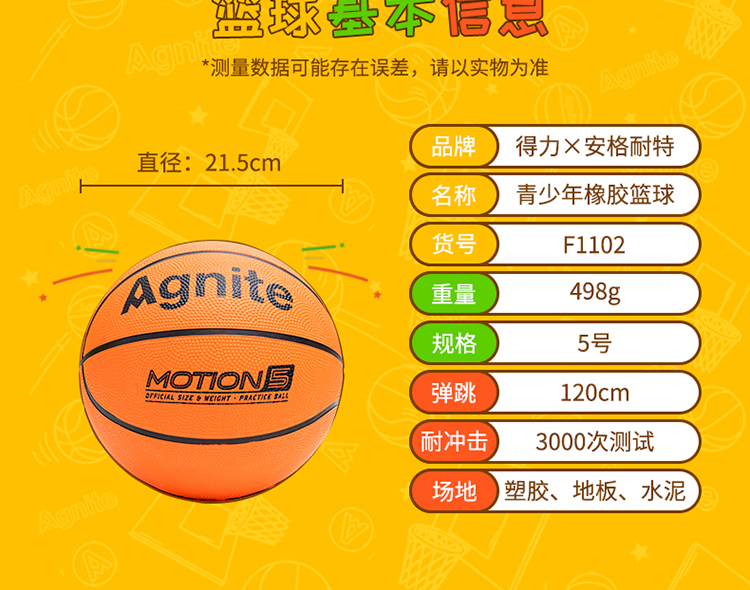 安格耐特F1102橡膠5號籃球(橙色)