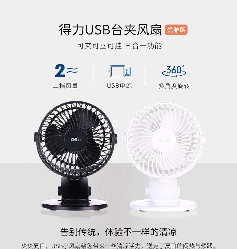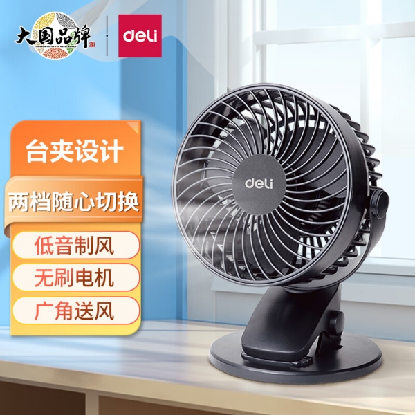 得力3688USB臺夾風扇(黑)(1臺/彩盒)5寸,兩檔,塑料USB直供電