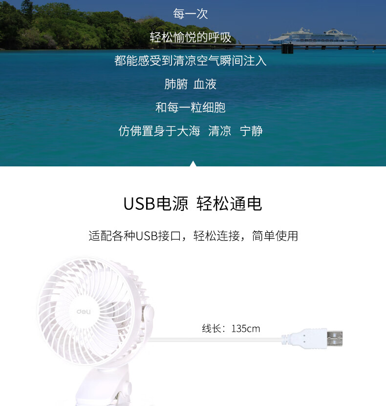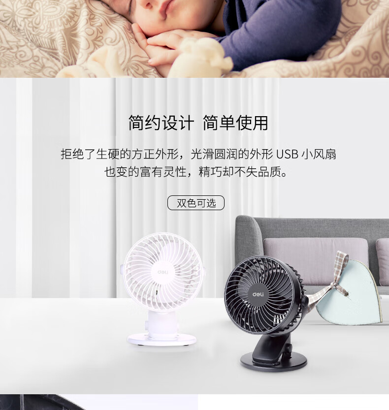 得力3688USB臺夾風扇(白)(1臺/彩盒)5寸,兩檔,塑料USB直供電