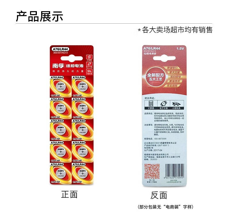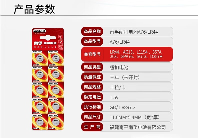 南孚A76紐扣電池10節/卡