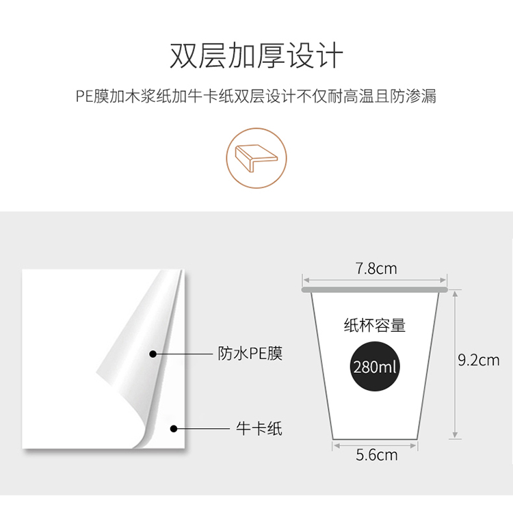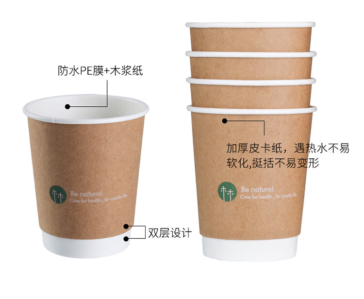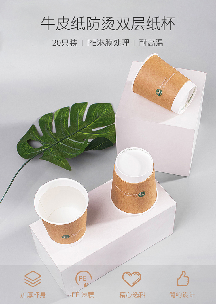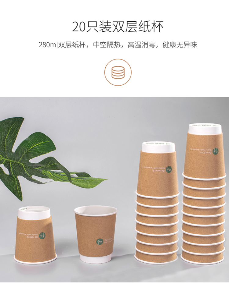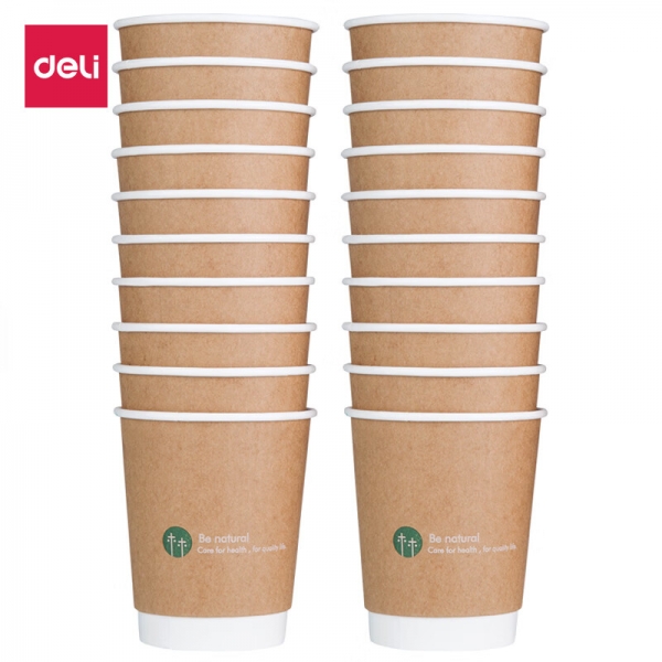 得力19209雙層紙杯(棕)(280ml-50只/袋)