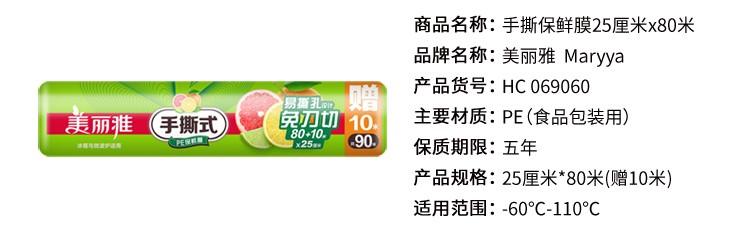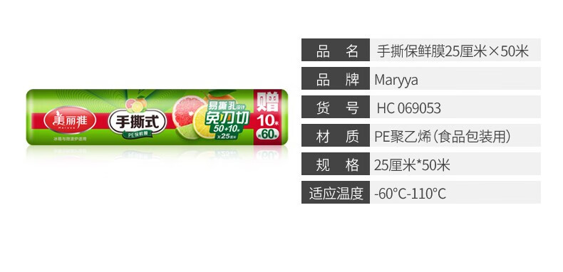 美麗雅HC69053手撕保鮮膜25CM*60米新