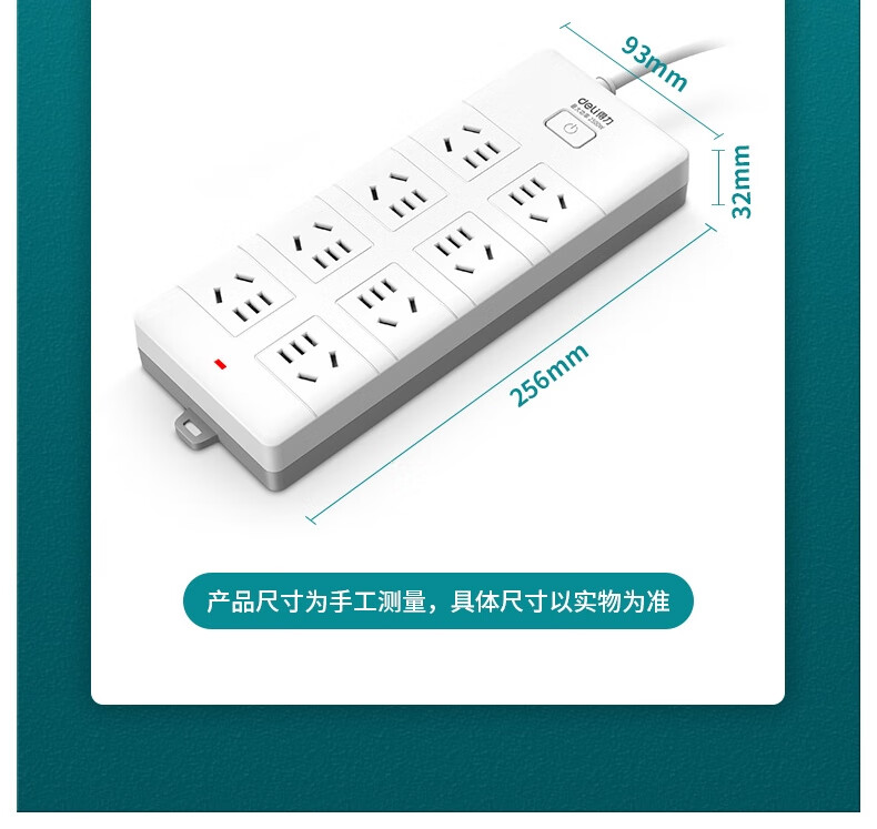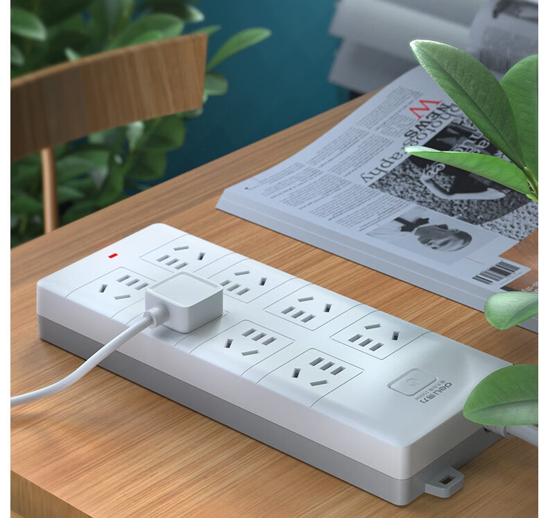 得力18262-02插座_8組_2米_PVC袋裝(白)