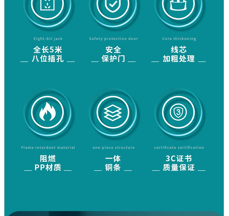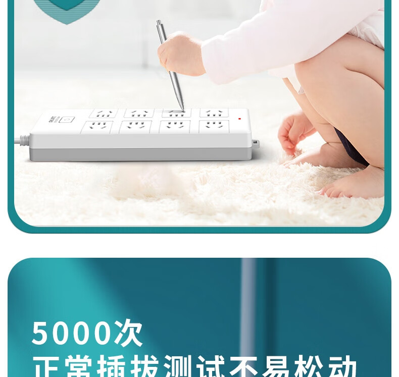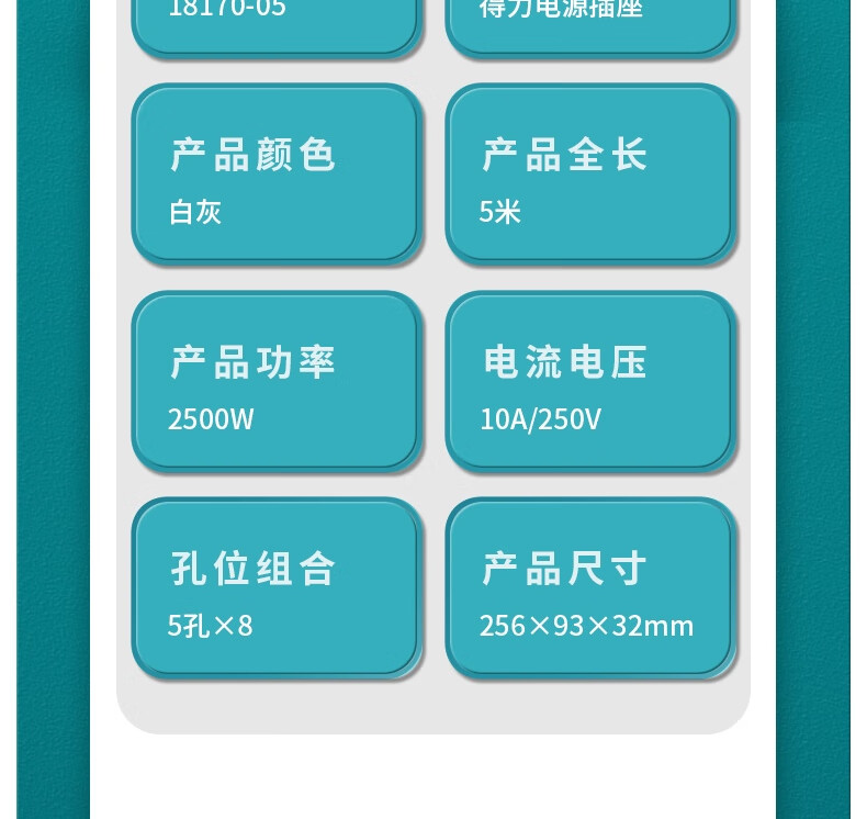 得力18170-05插座_8組_5米_PVC袋裝(白)