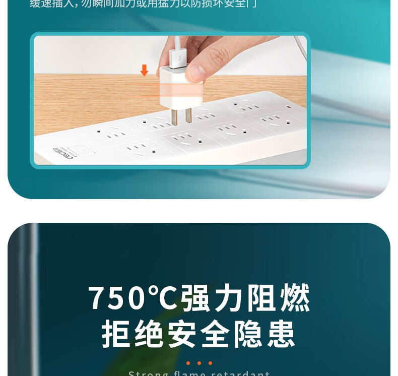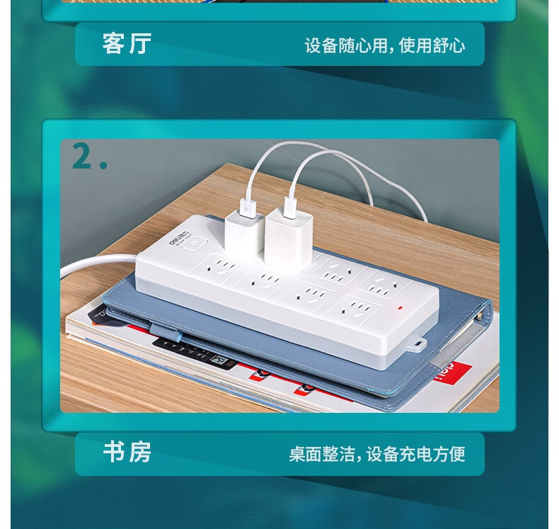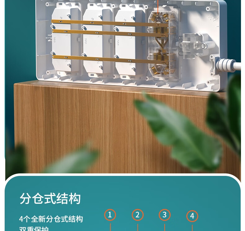 得力18251插座_2+2_2米_PVC袋裝(白)