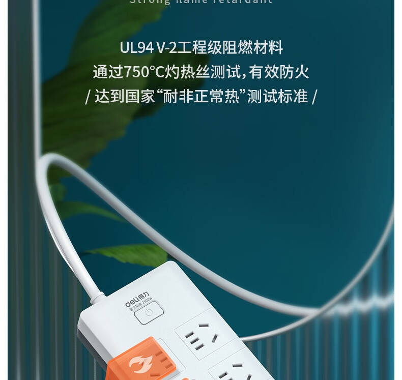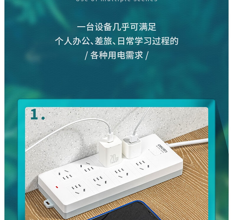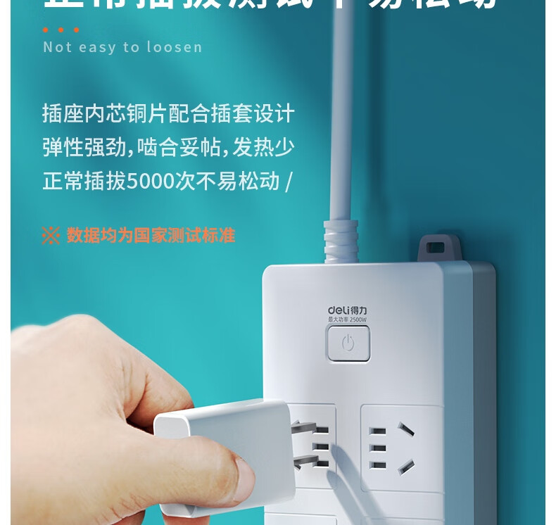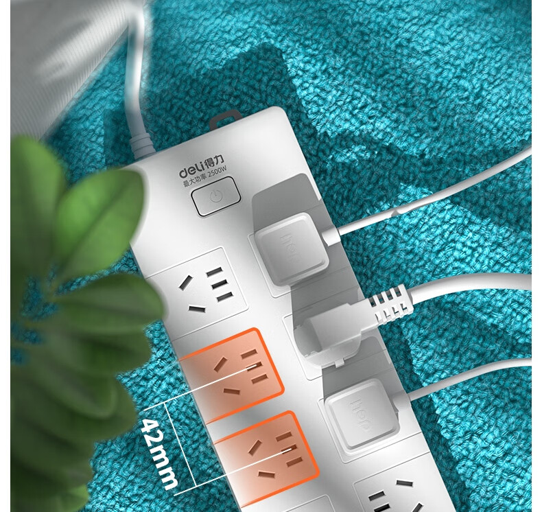 得力18275(02)插座_10組_2米_PVC袋裝(白)