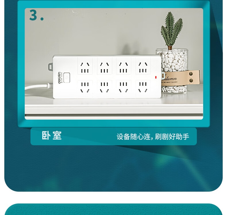 得力18170-03插座_8組_3米_PVC袋裝(白)