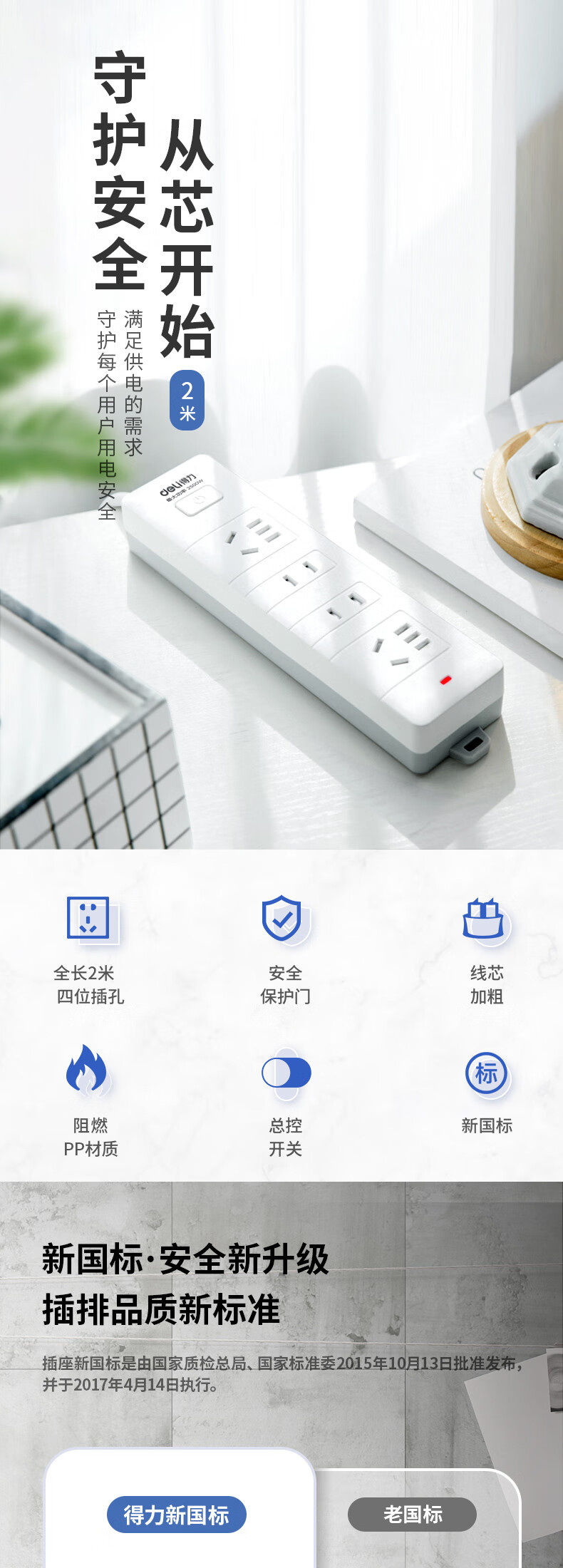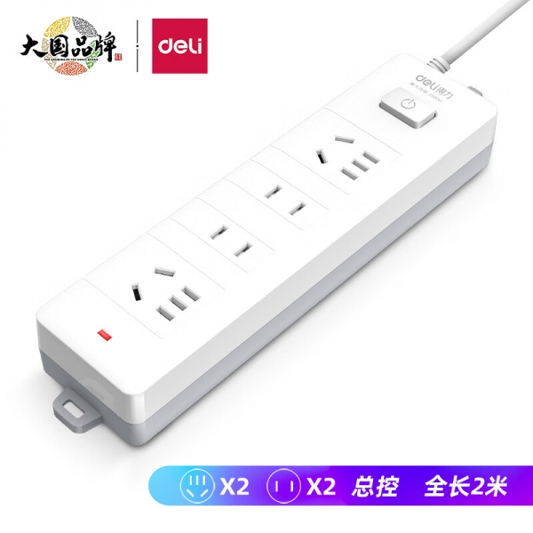 得力18251插座_2+2_2米_PVC袋裝(白)