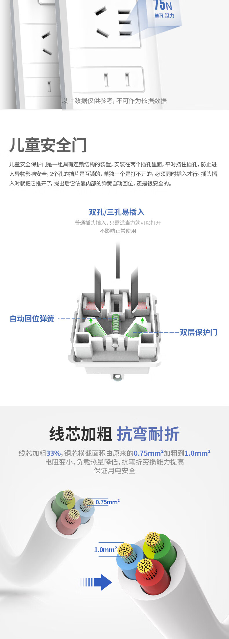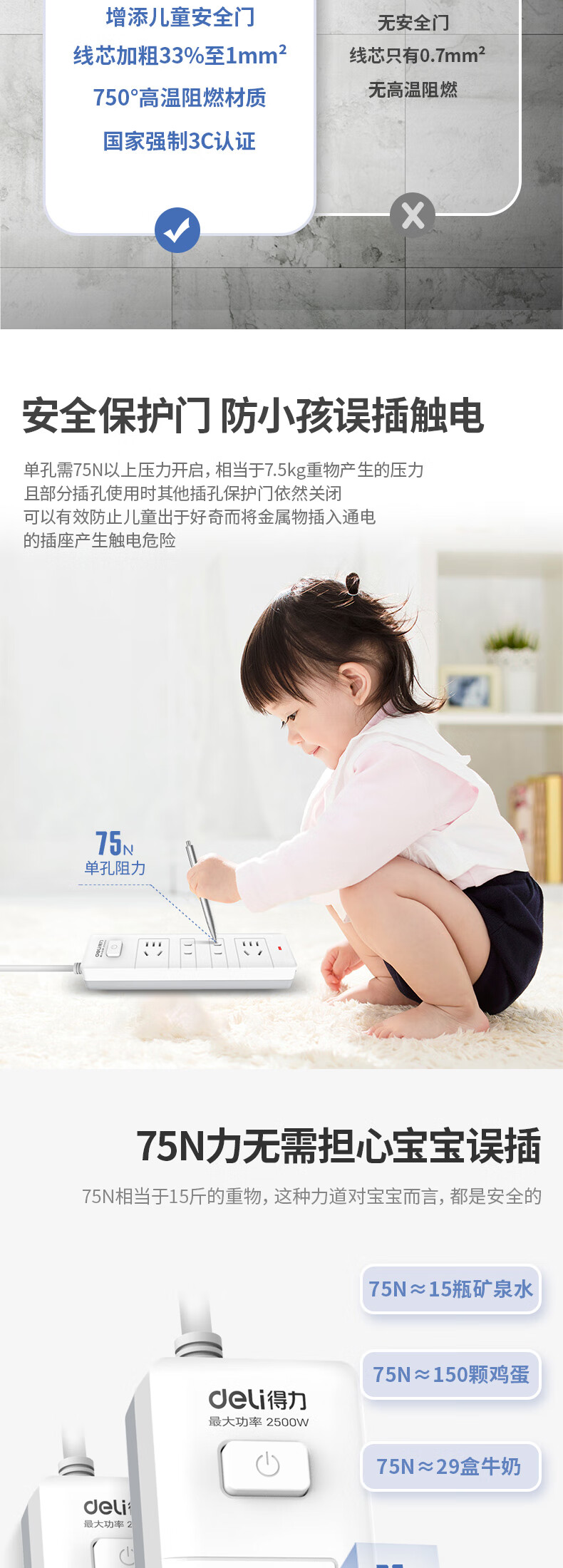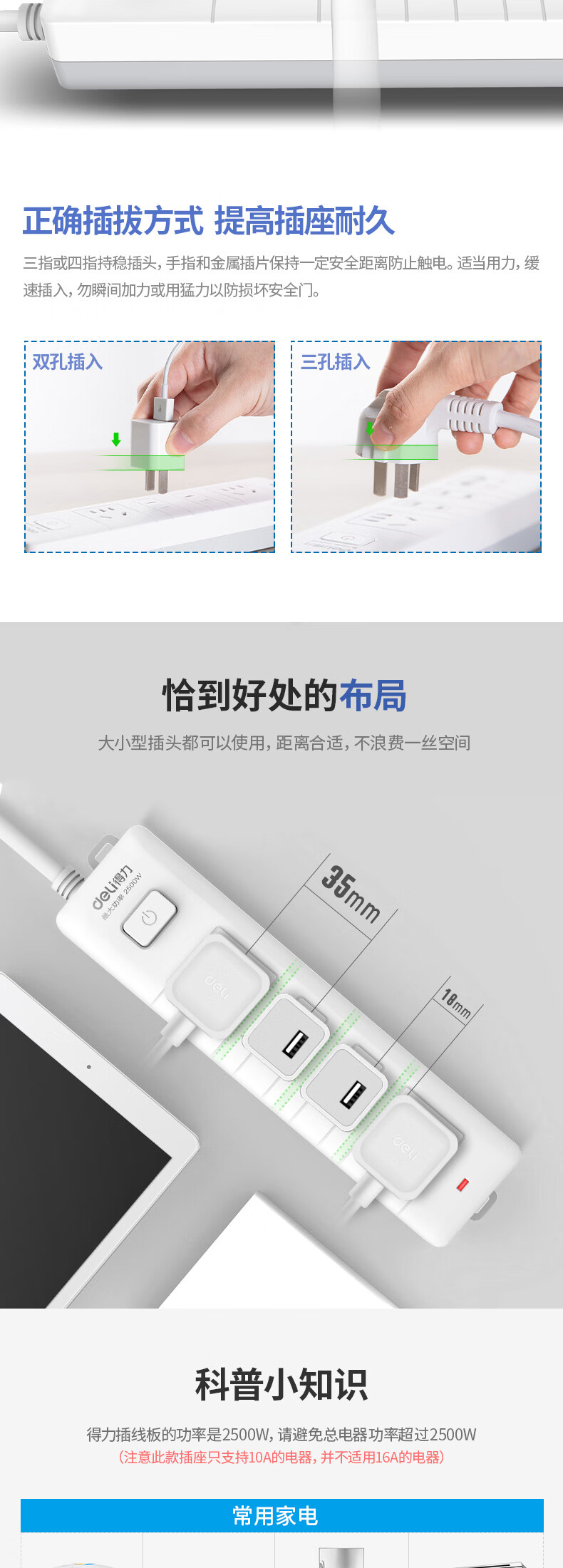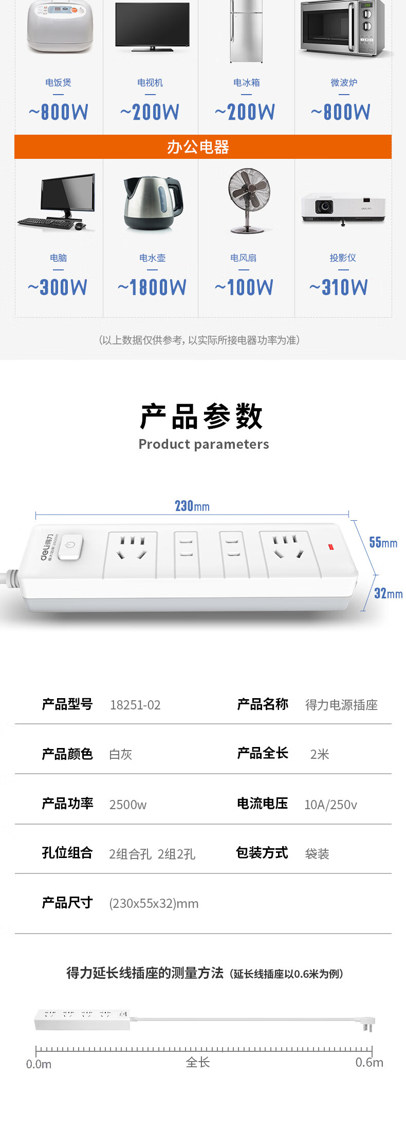 得力18275(02)插座_10組_2米_PVC袋裝(白)