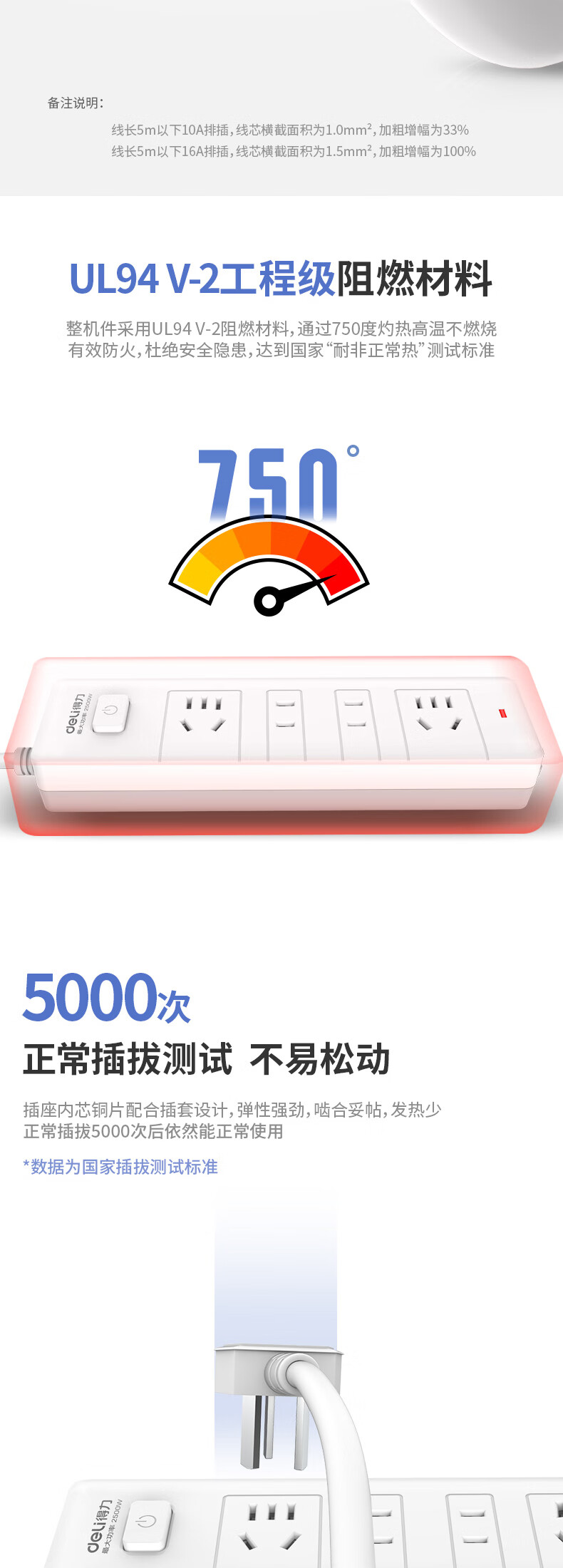 得力18275-05插座_10組_5米_PVC袋裝(白)