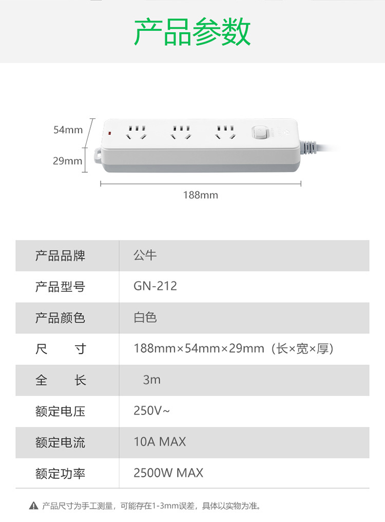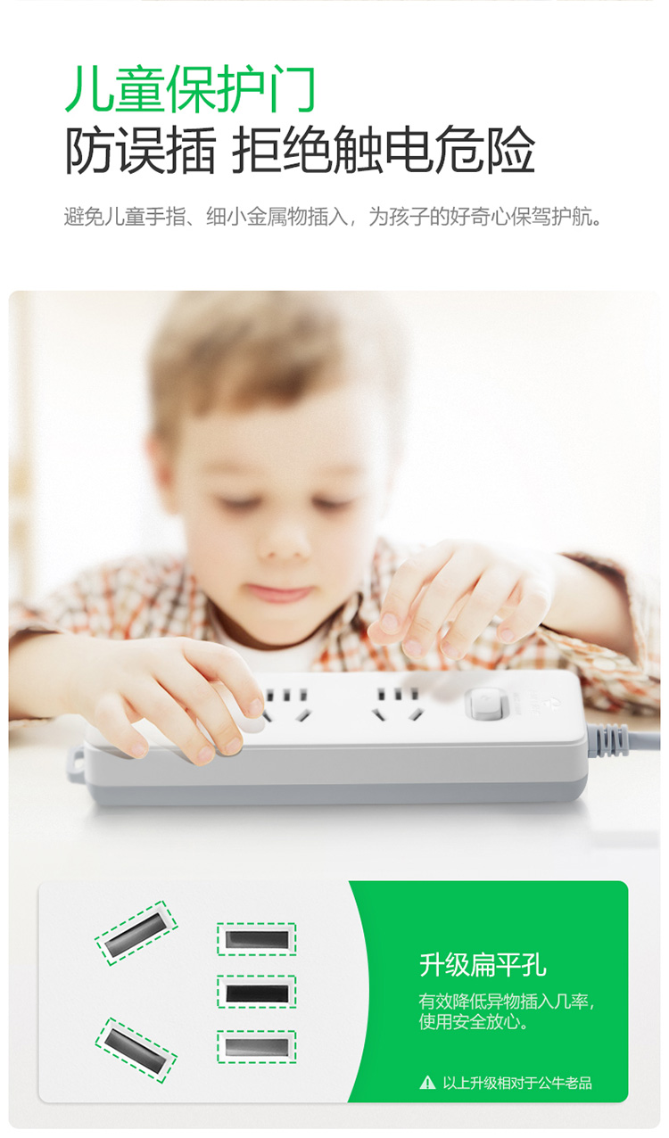 公牛GNV-UUA123插線板1.5米 3位+2位USB