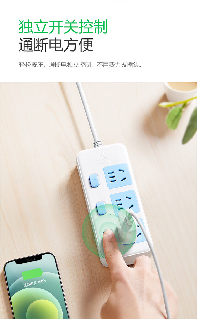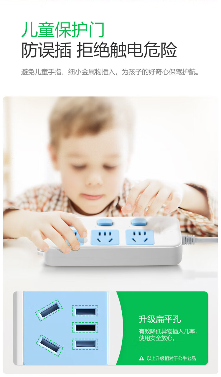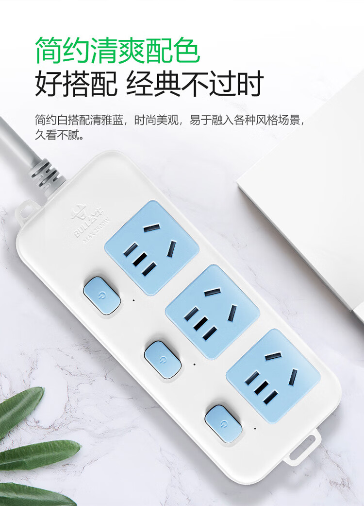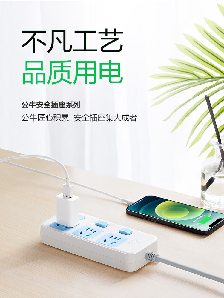 公牛GNV-UUA123插線板1.5米 3位+2位USB