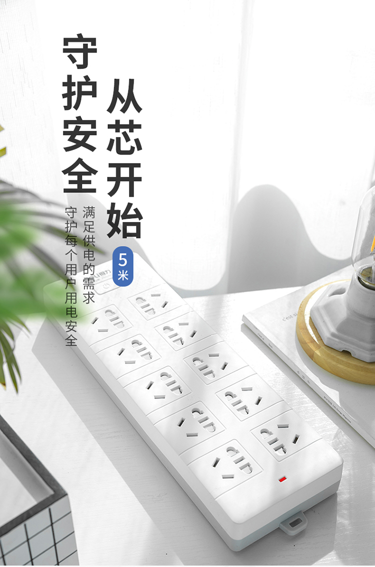 得力18275-05插座_10組_5米_PVC袋裝(白)