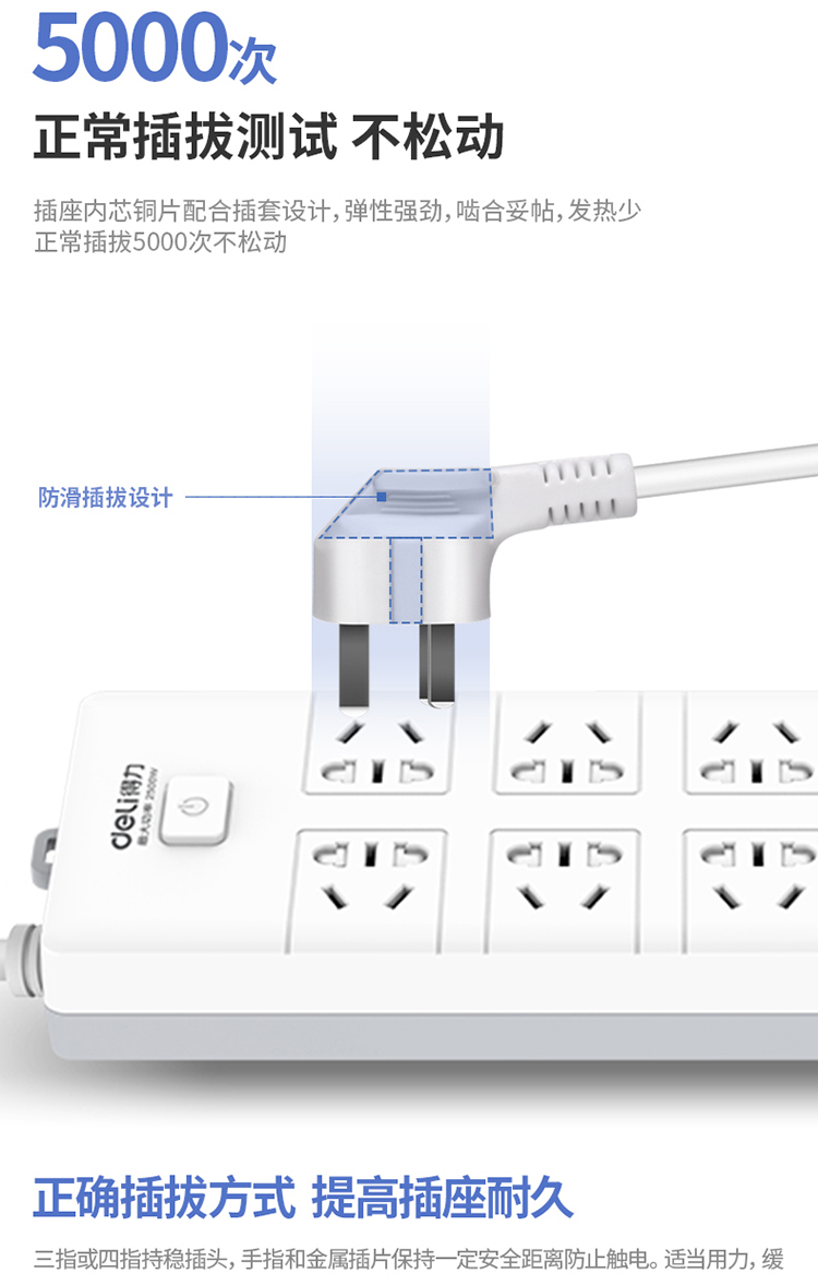 得力18275-03插座10組/3米PVC袋裝(白)