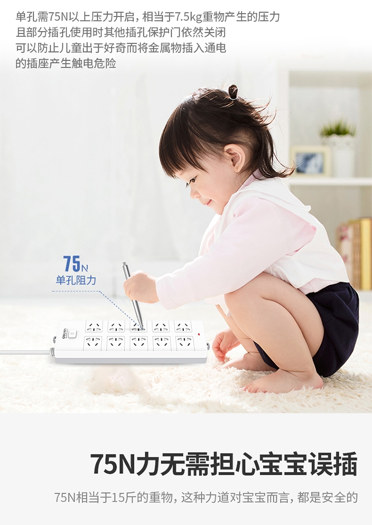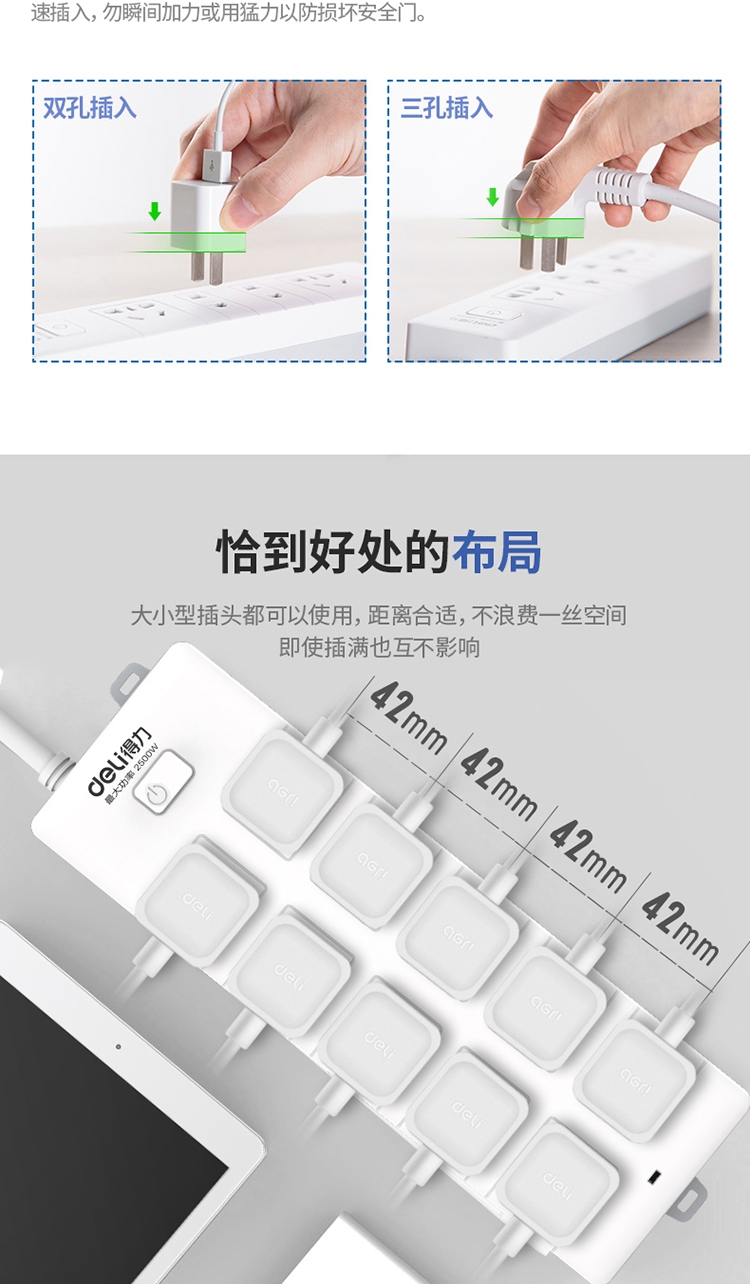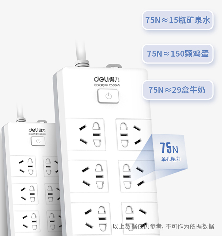 得力18275(02)插座_10組_2米_PVC袋裝(白)