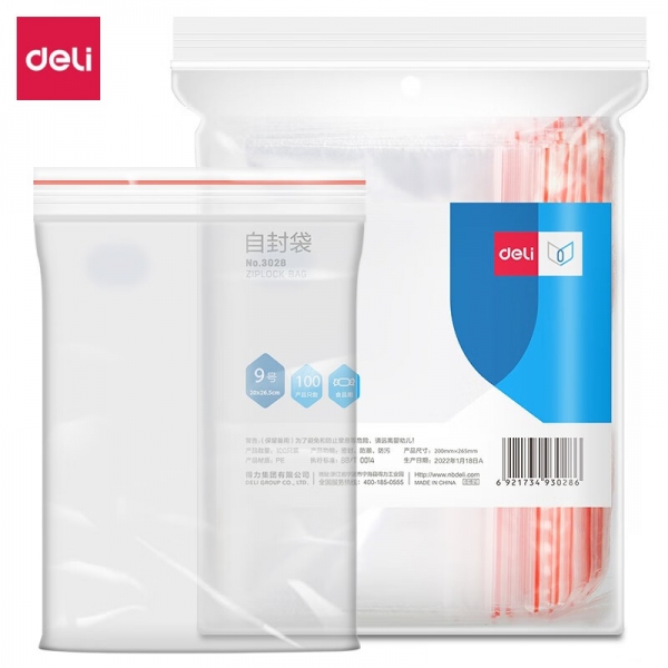 得力3028自封袋9號280*200mm*100pcs