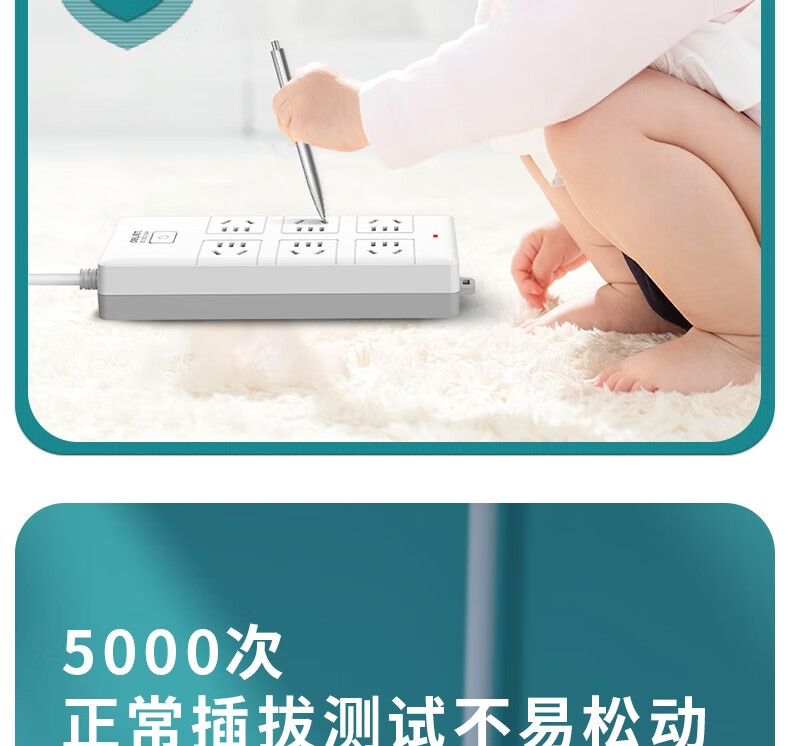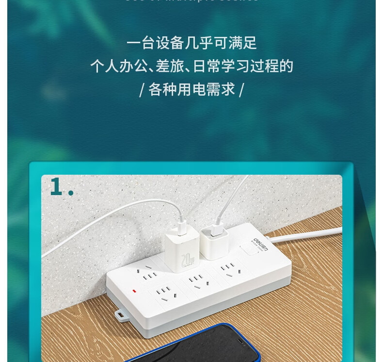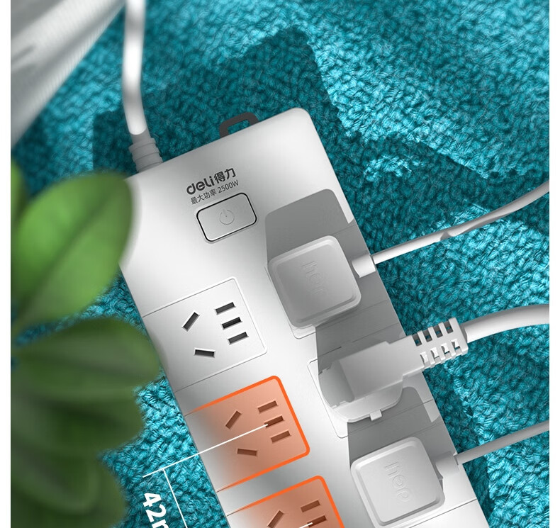 得力18168-03插座_6組_3米_PVC袋裝(白)