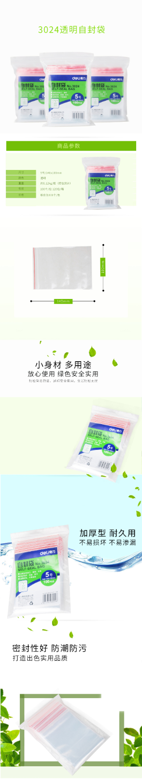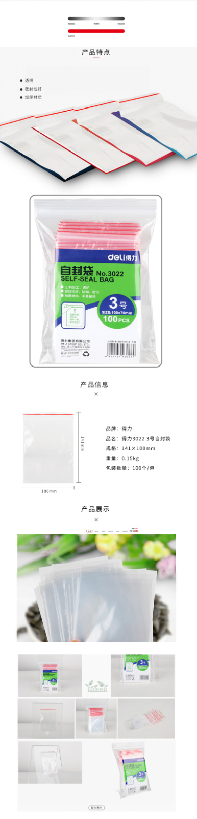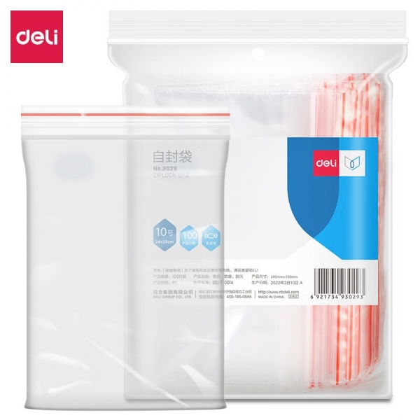 得力3029自封袋(透明)-10號(100個(gè)/包)340x240*0.04mm