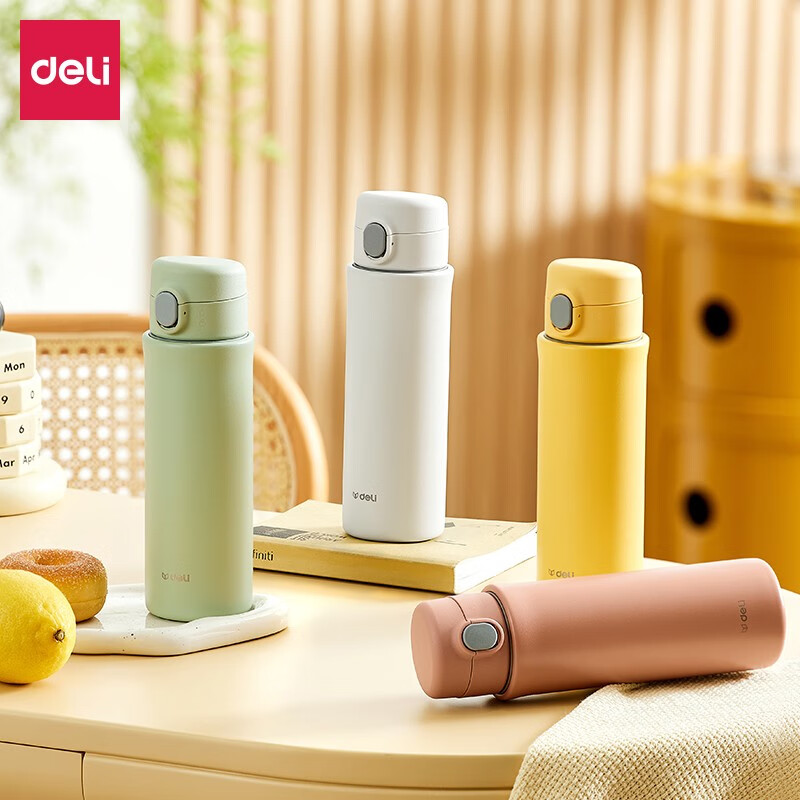 得力LL609彈蓋保溫杯420ml(黃)
