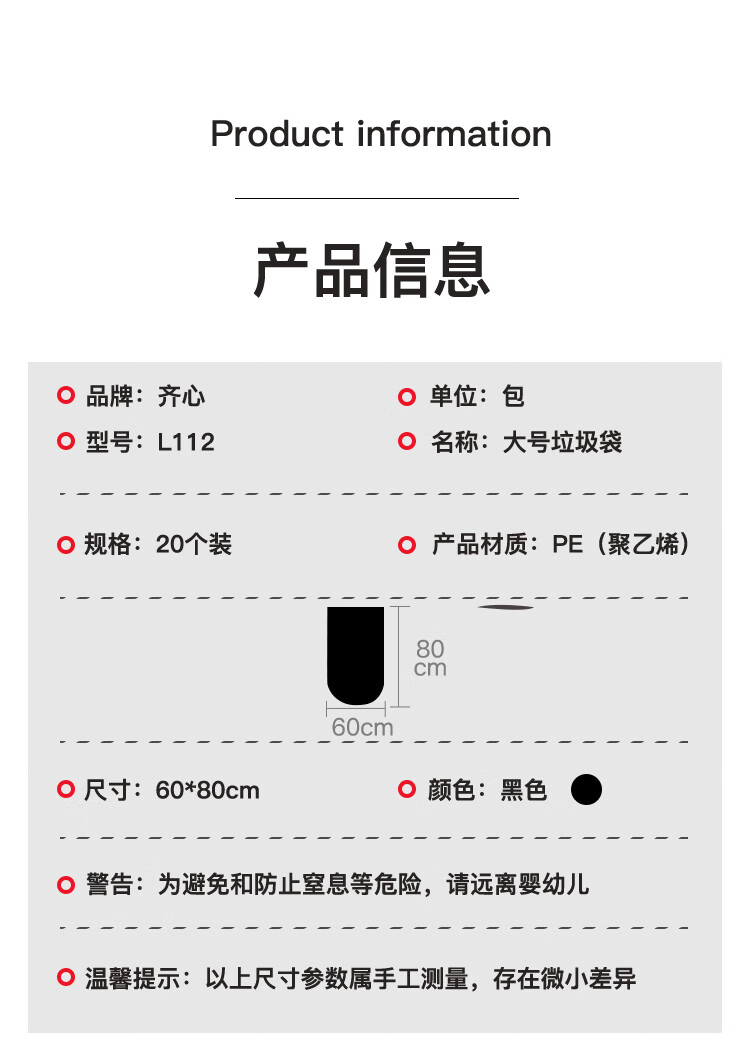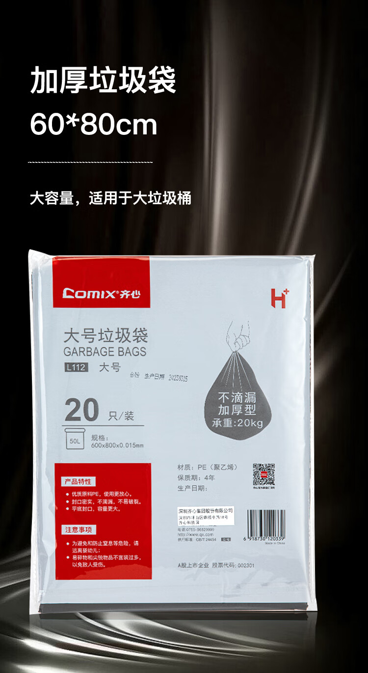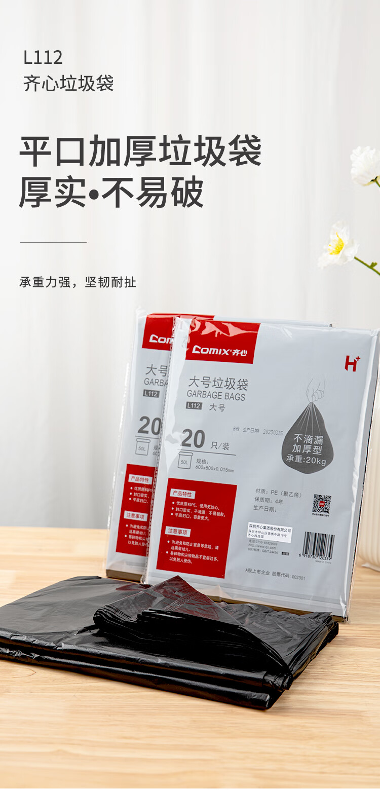 齊心L112大號垃圾袋60*80cm*20個*30卷