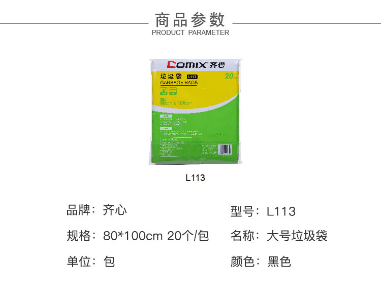 齊心L113大號(hào)垃圾袋80*100cm*20個(gè)*24卷
