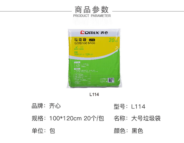 齊心L114大號垃圾袋100*120cm*20個*12卷