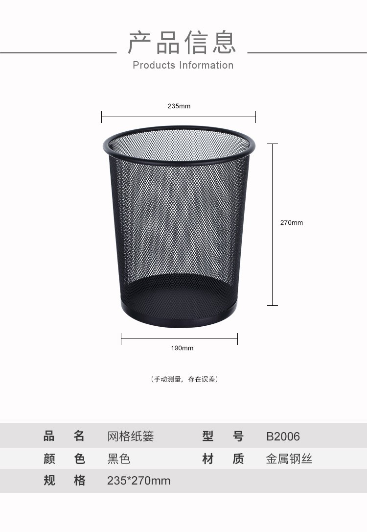 齊心B2006金屬網格圓紙簍φ235*H270mm*6