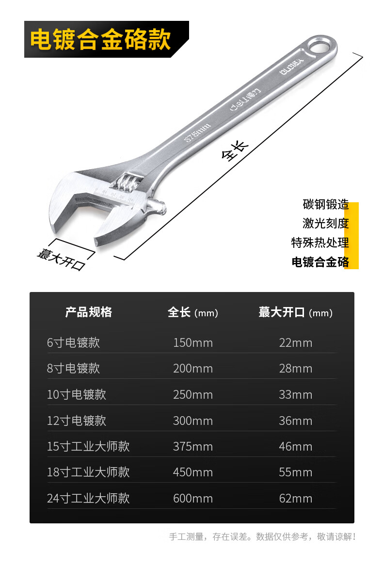 得力DL006A光柄活動扳手(銀)6寸