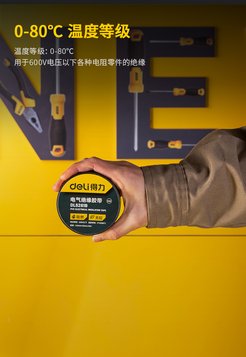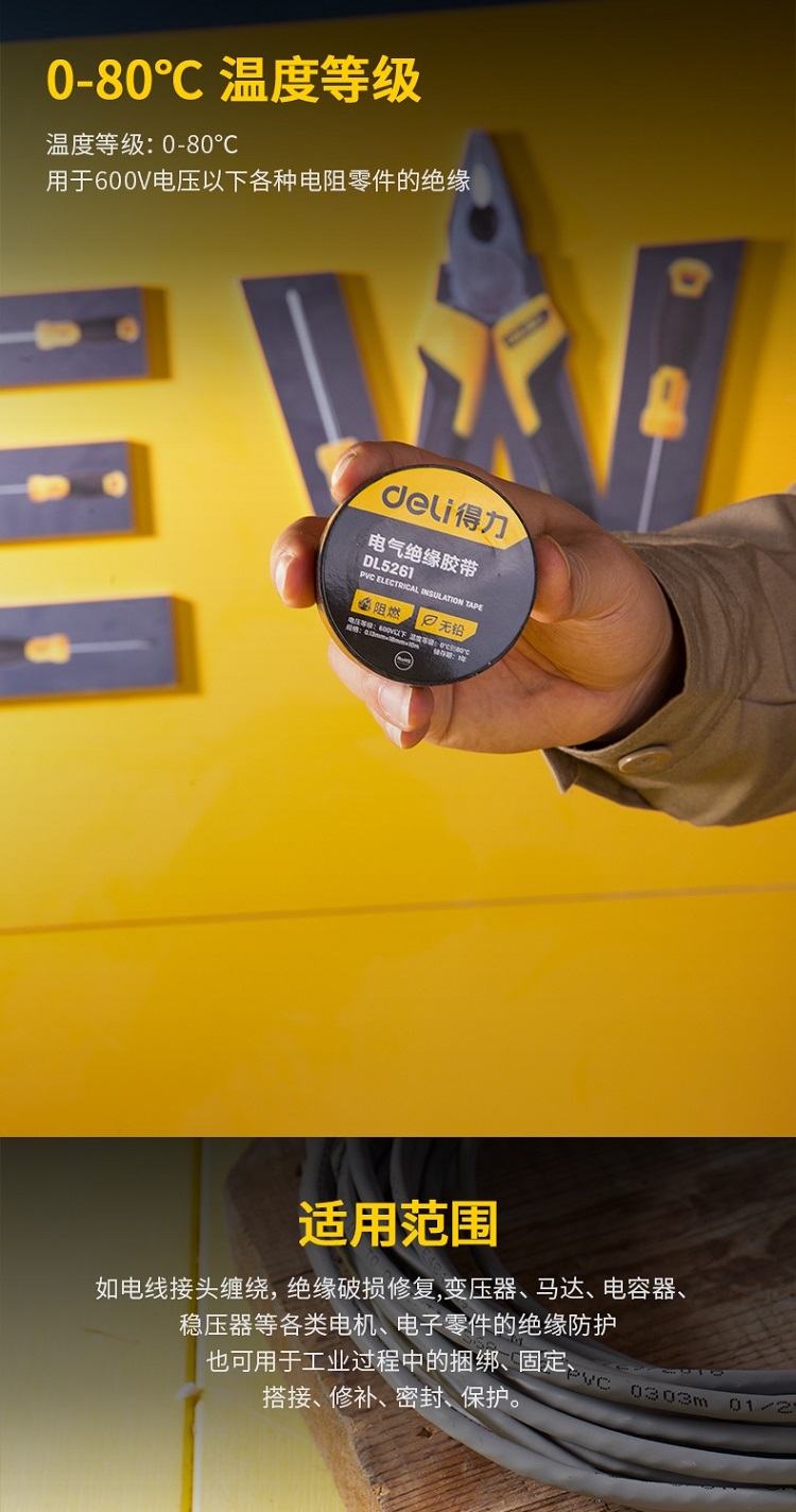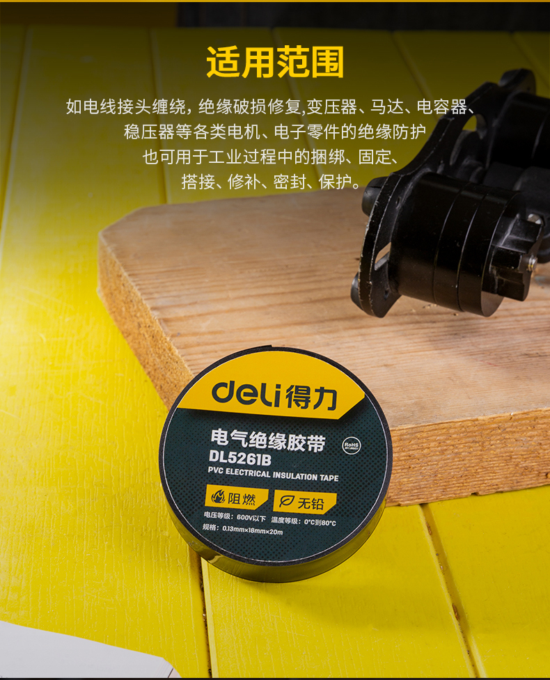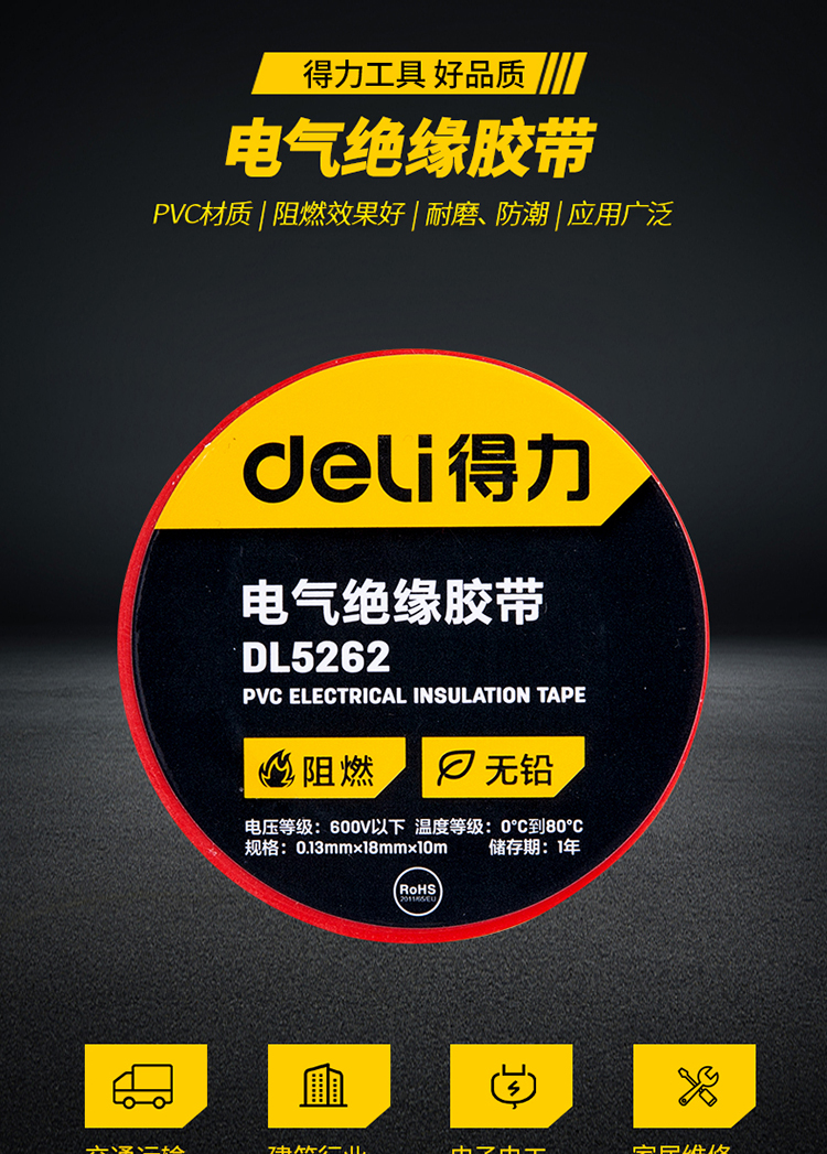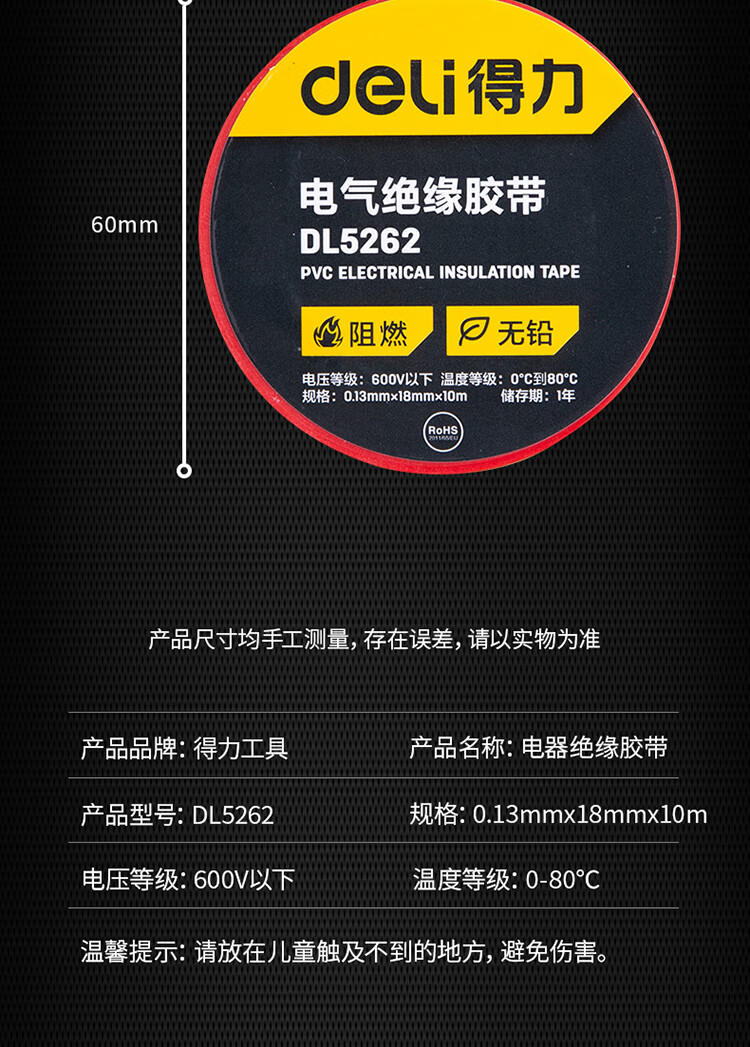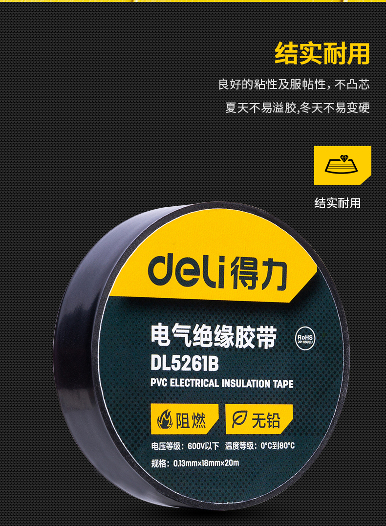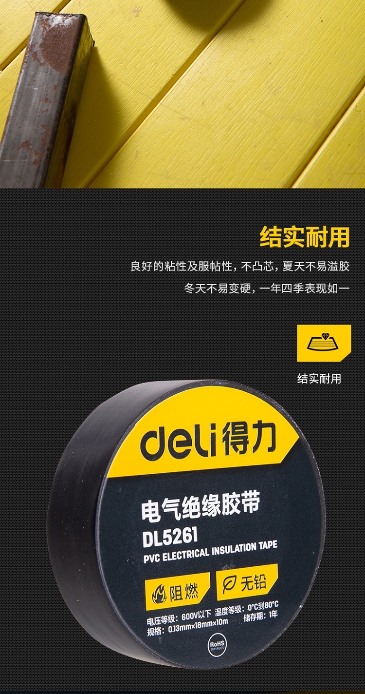 得力DL5261絕緣膠帶(黑)0.13mmx18mmx10m