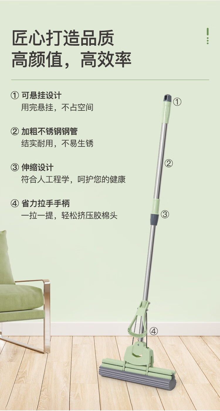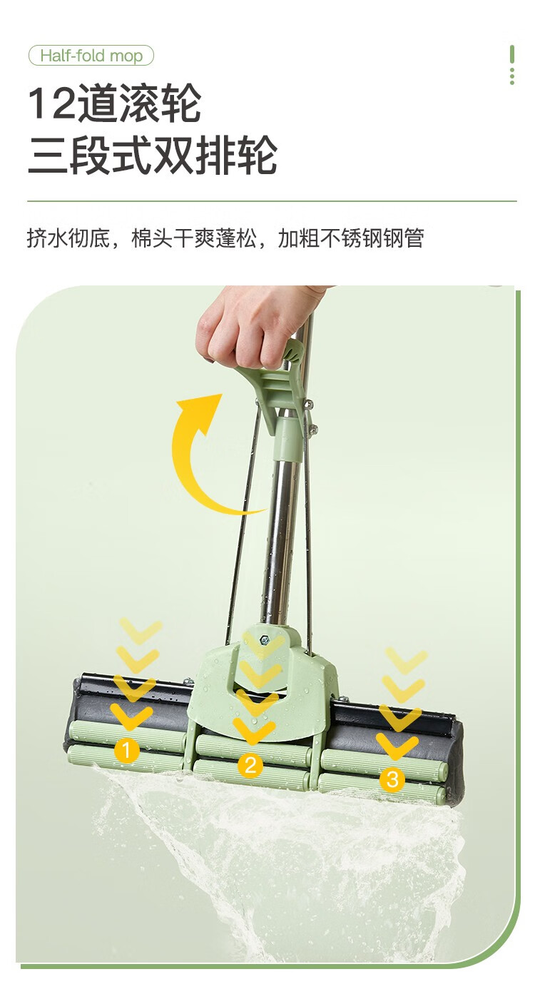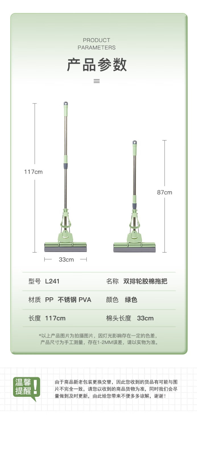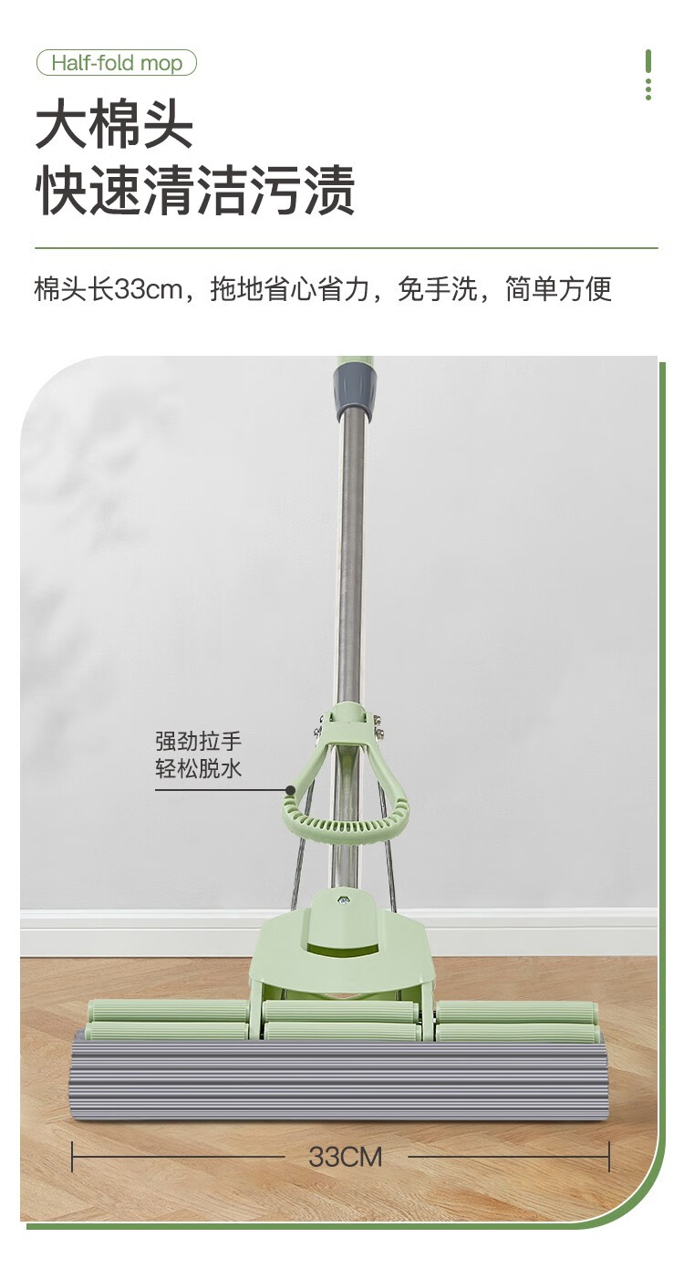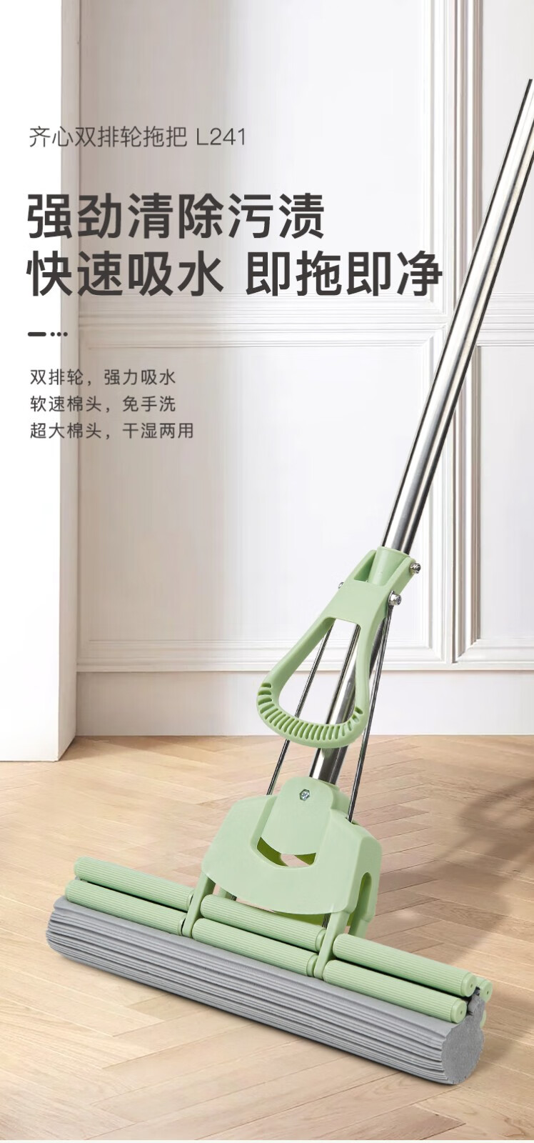 齊心L240對折膠棉拖把 棉頭長28CM 1桿1頭(不銹鋼直桿)