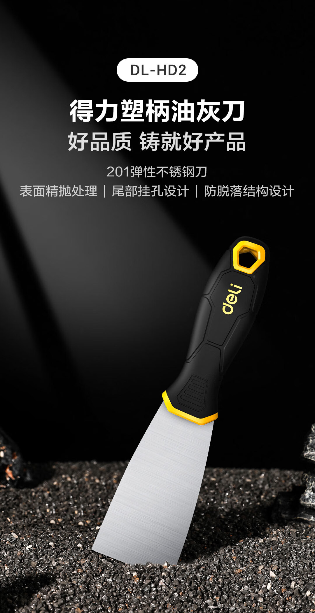得力DL-HD2塑柄油灰刀(黃)2寸