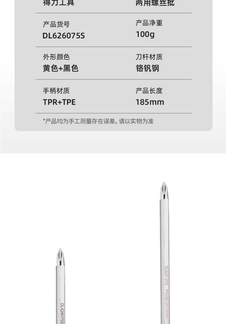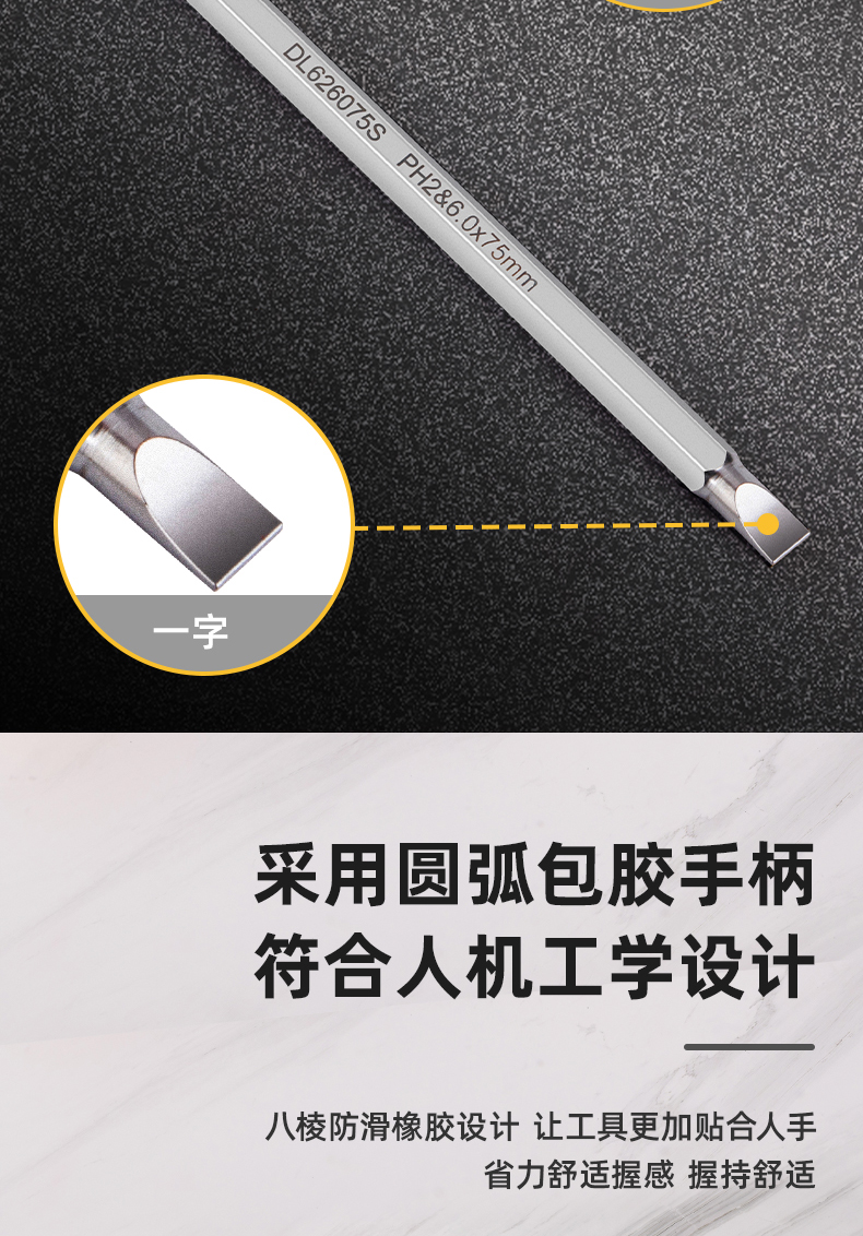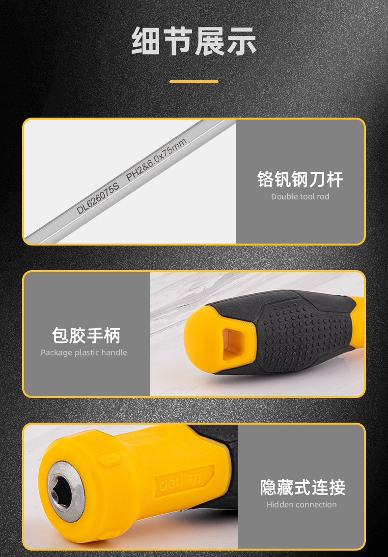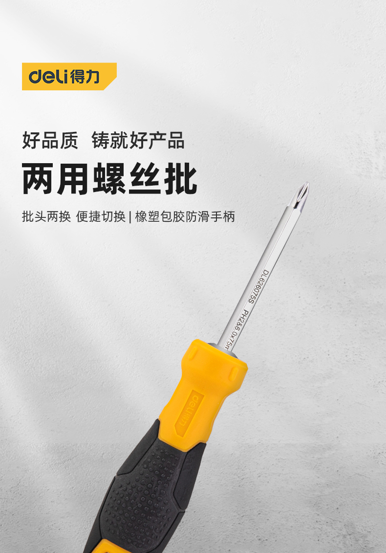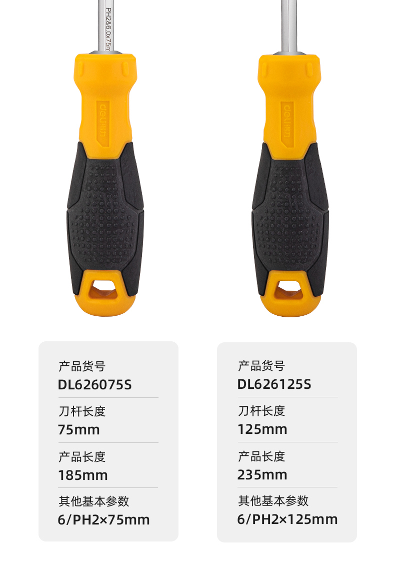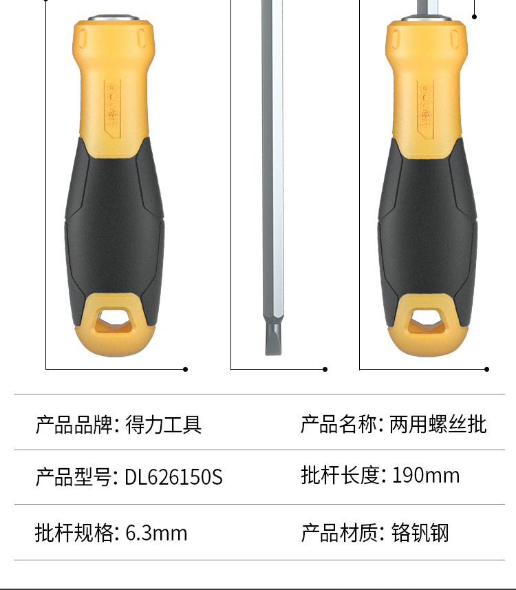 得力DL626150S兩用螺絲批鉻釩鋼(黃)6/PH2x150mm