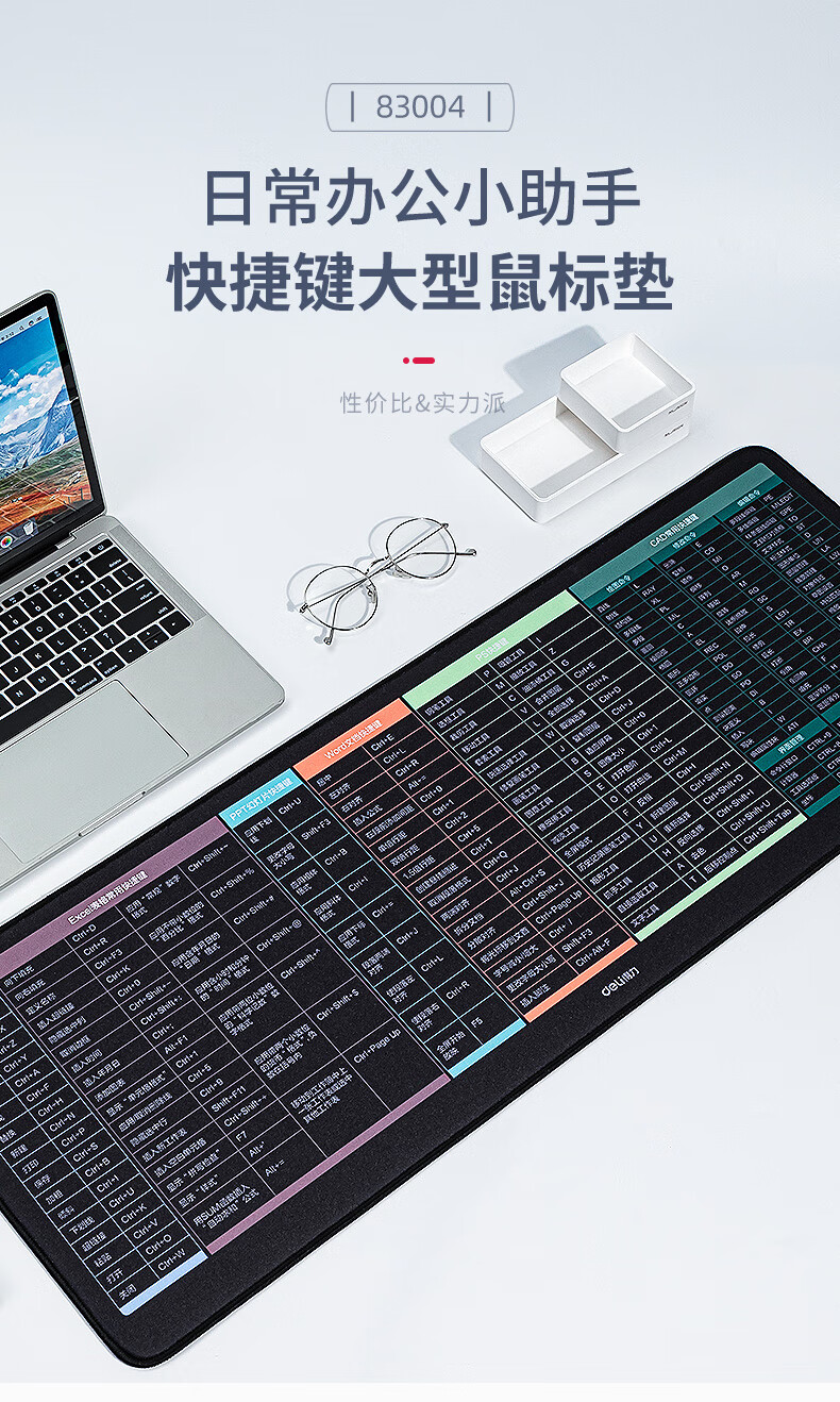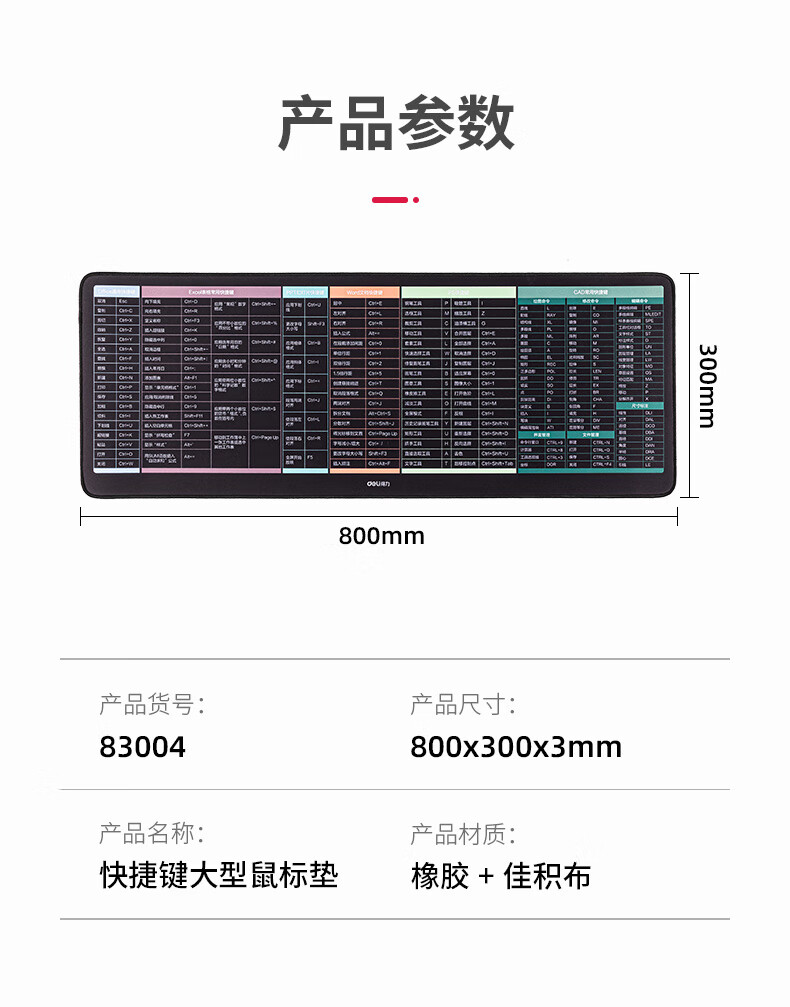 得力83004快捷鍵鼠標墊800×300mm(黑)