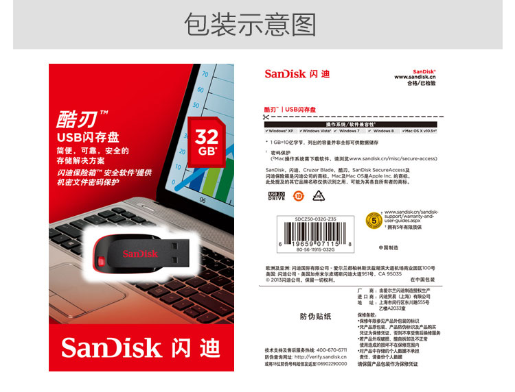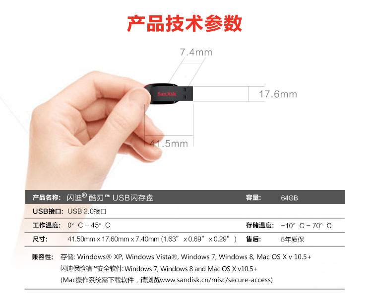 閃迪CZ50(酷刃)128G優盤2.0