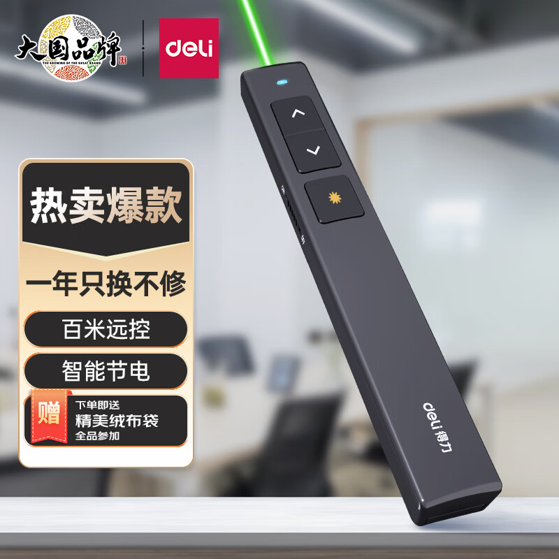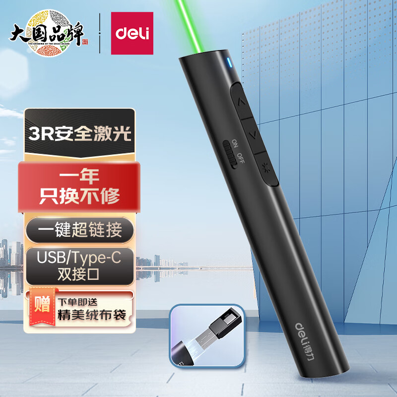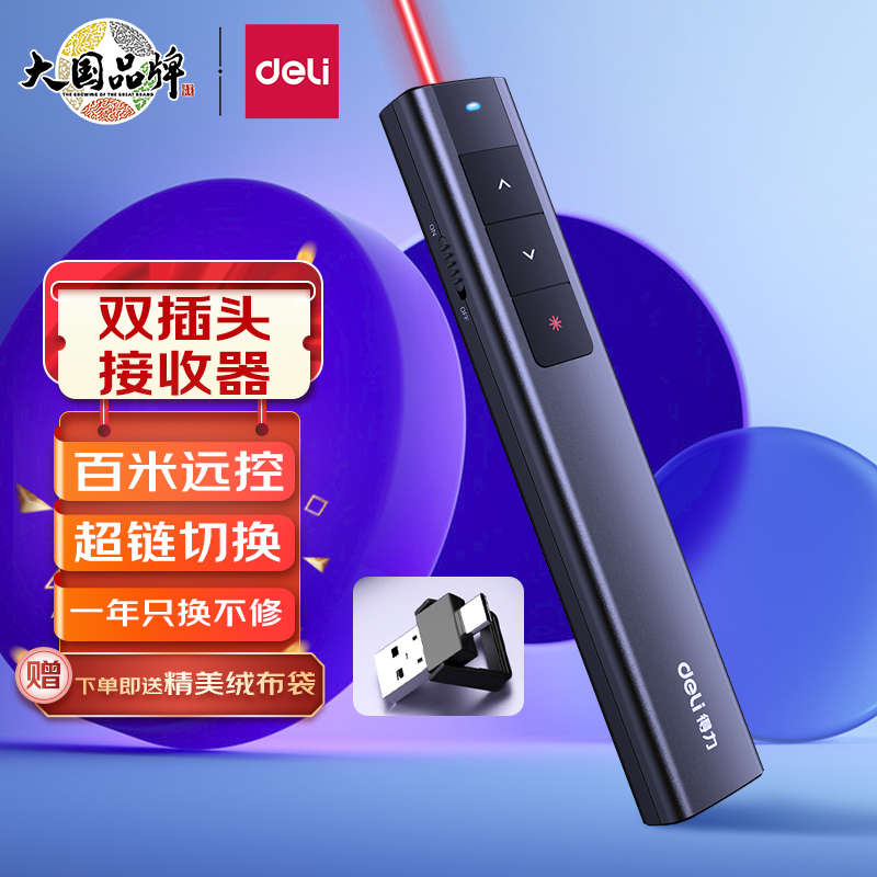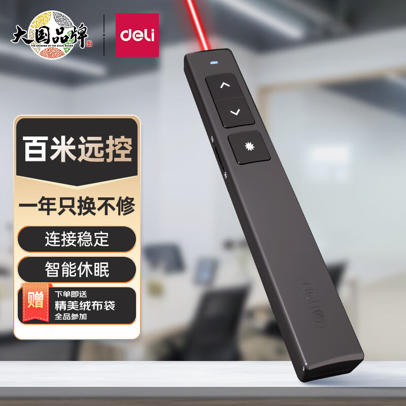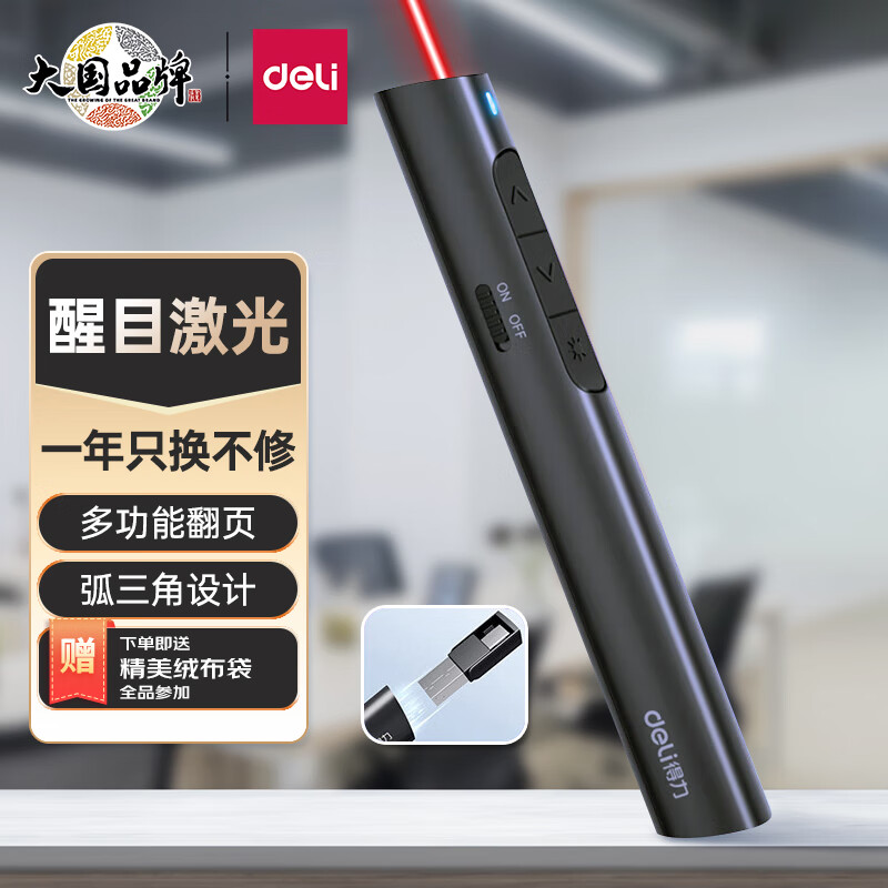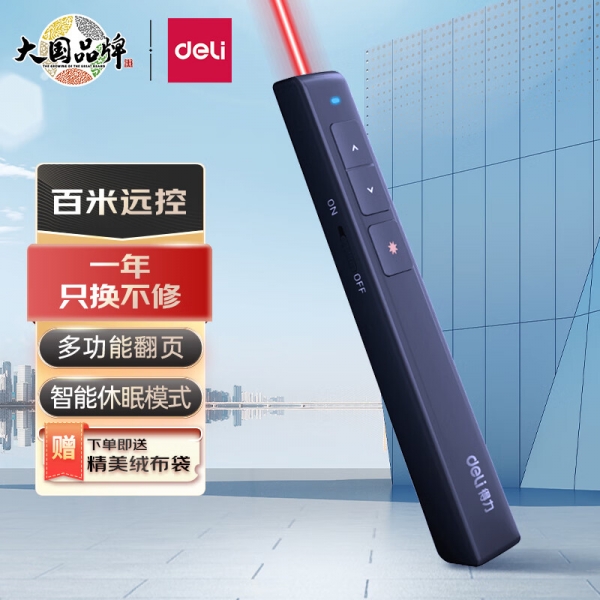 得力2801翻頁激光筆(黑色)(PET彩盒+泡殼)