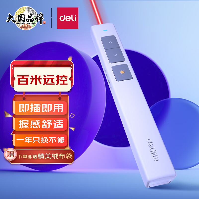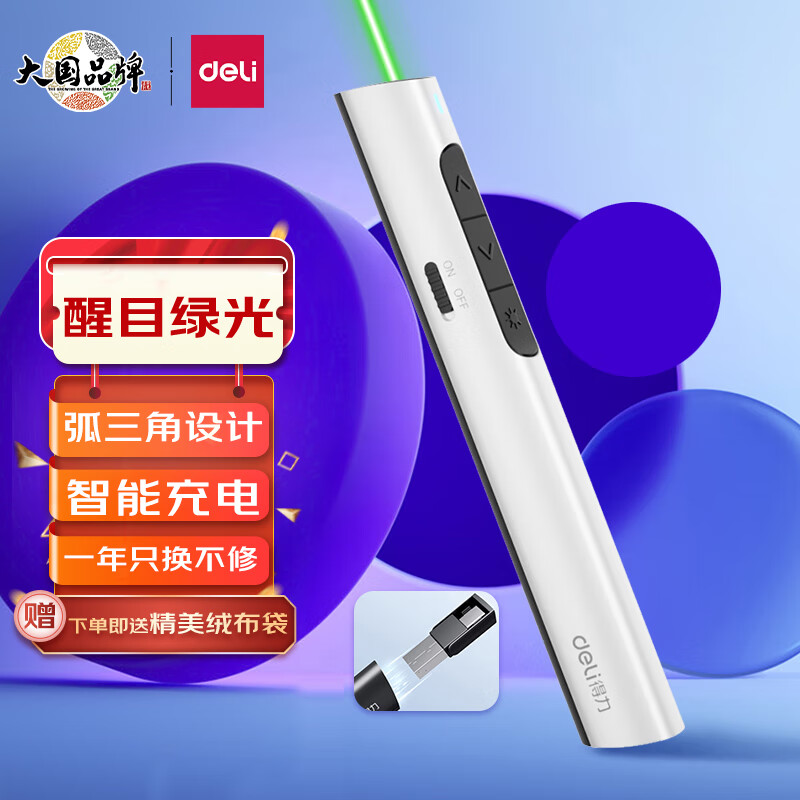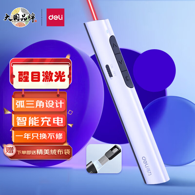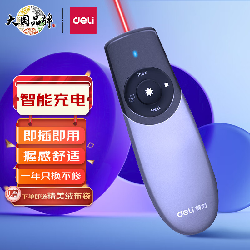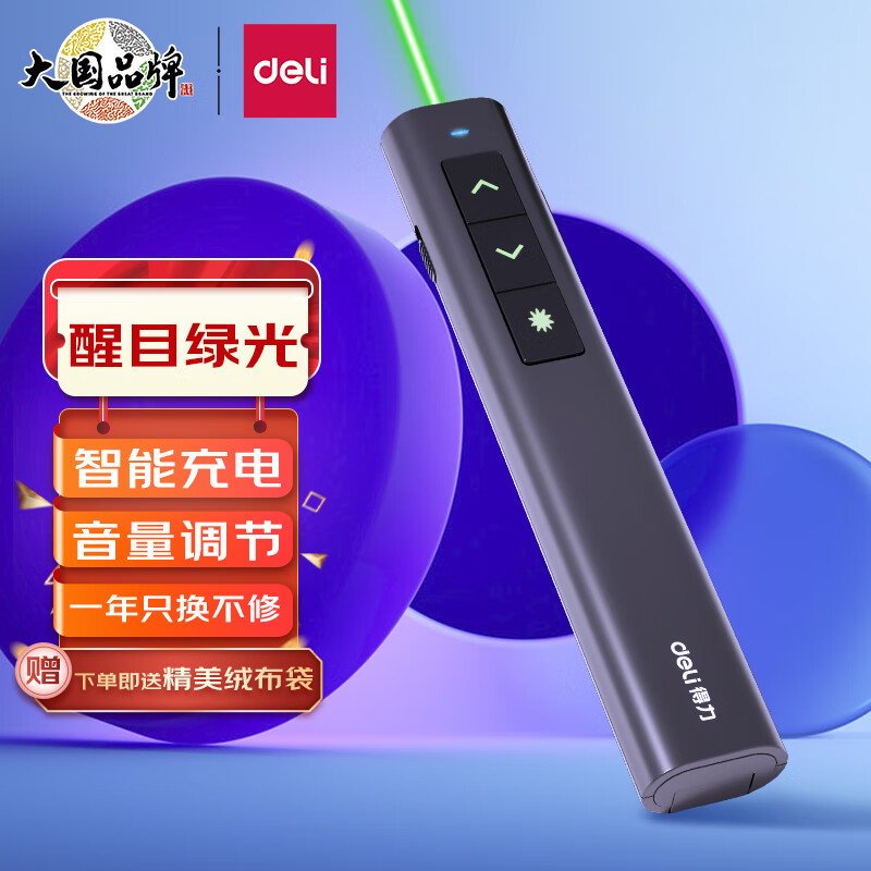 得力2801翻頁激光筆(黑色)(PET彩盒+泡殼)