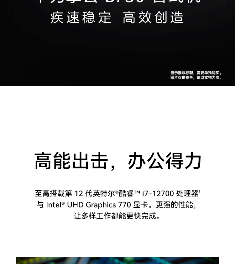 華為擎云B730-K7851B臺式電腦(Inteli7-12700+8GB+512GB)有線鍵鼠/16.6L/WIN11家庭版/23.8顯示器
