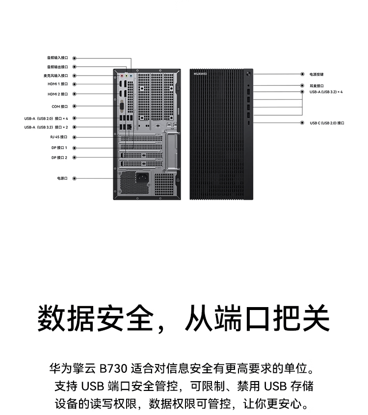 華為擎云B730-K7621M臺式電腦(i7-12700+16GB+256GB+1TB)有線鍵鼠//23.8寸顯示器