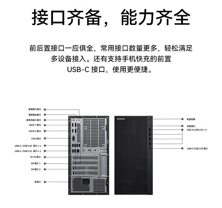 華為擎云B730-K7621M臺式電腦(i7-12700+16GB+256GB+1TB)有線鍵鼠//23.8寸顯示器