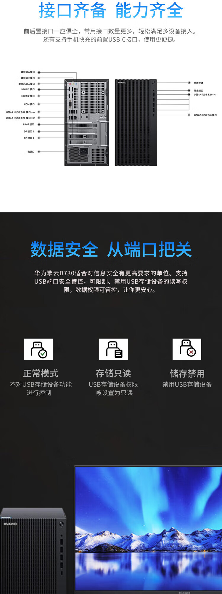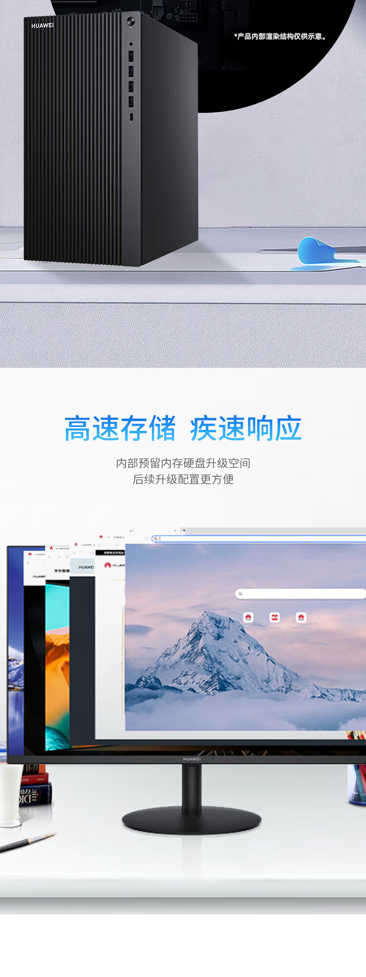 華為擎云B730-K7621M臺式電腦(i7-12700+16GB+256GB+1TB)有線鍵鼠//23.8寸顯示器