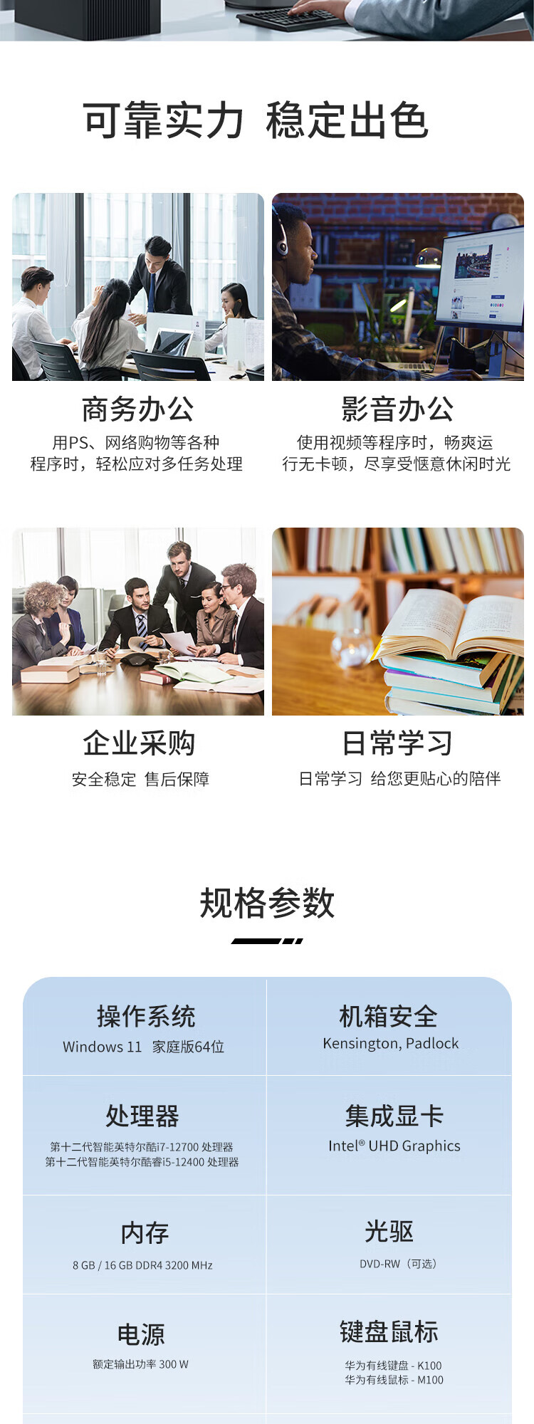 華為擎云B730-K7651B臺式電腦(Inteli7-12700+16GB+512GB)有線鍵鼠/16.6L/WIN11家庭版/23.8顯示器