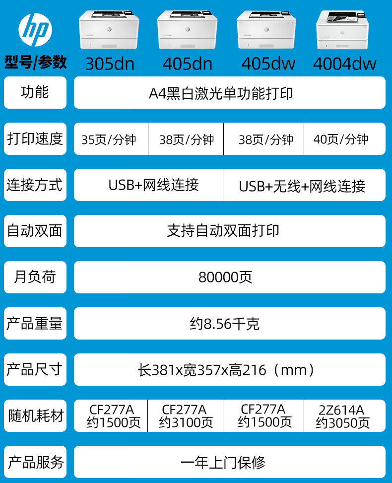 惠普305dn黑白激光打印機