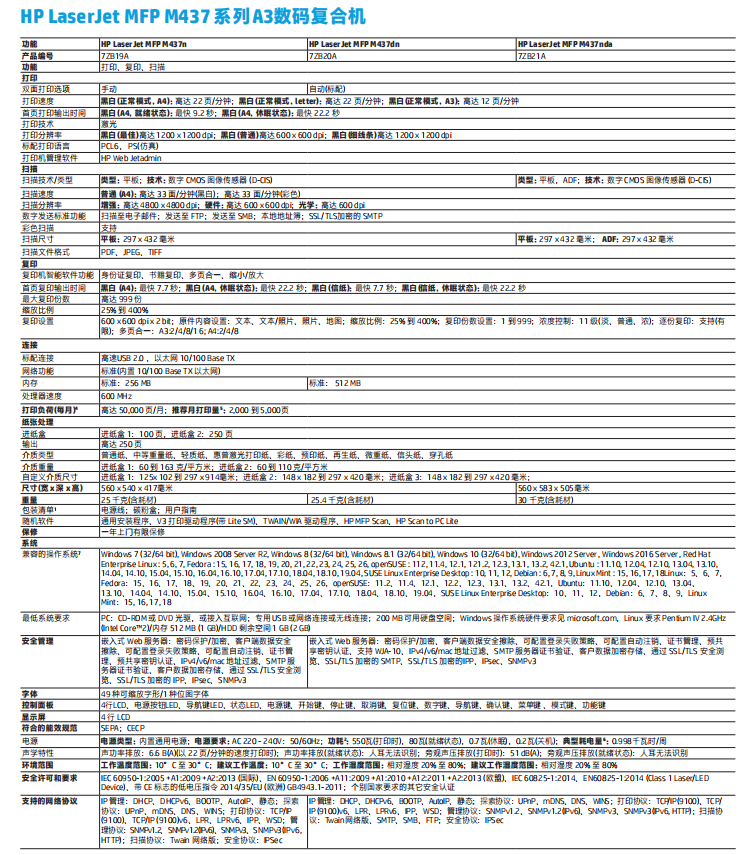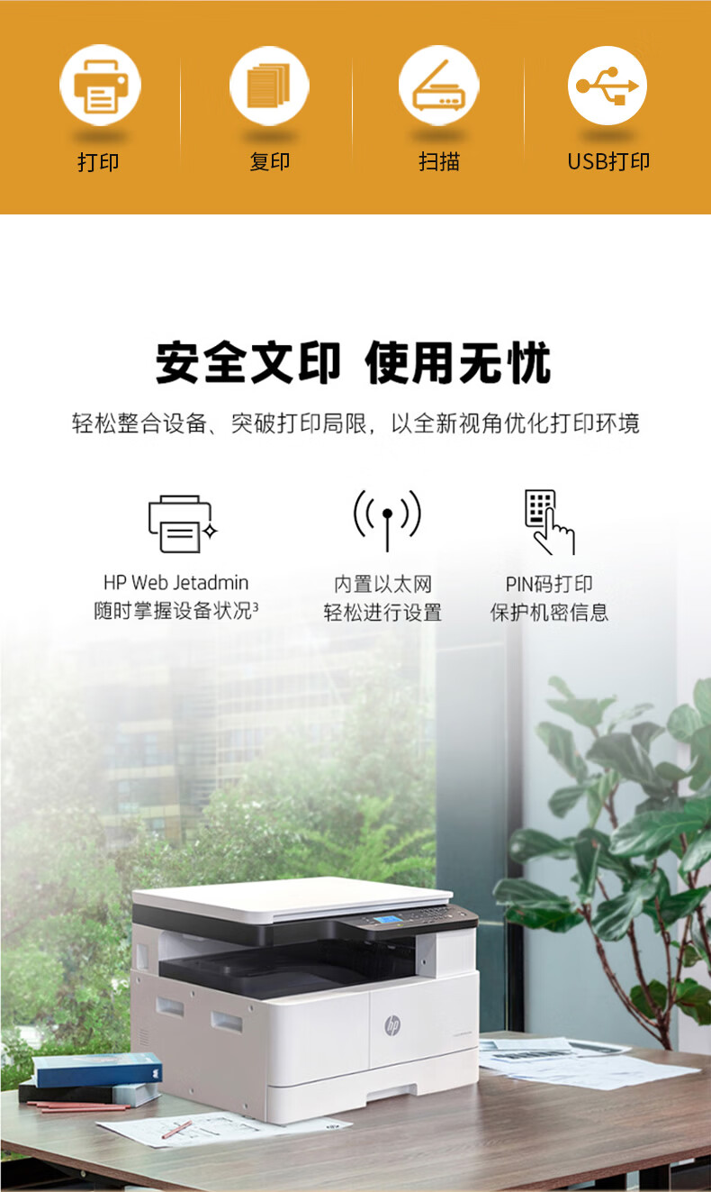 惠普M437DN黑白激光一體機(jī):標(biāo)準(zhǔn)網(wǎng)絡(luò)及雙面