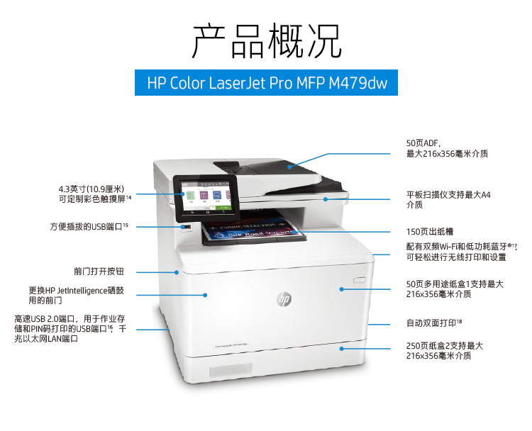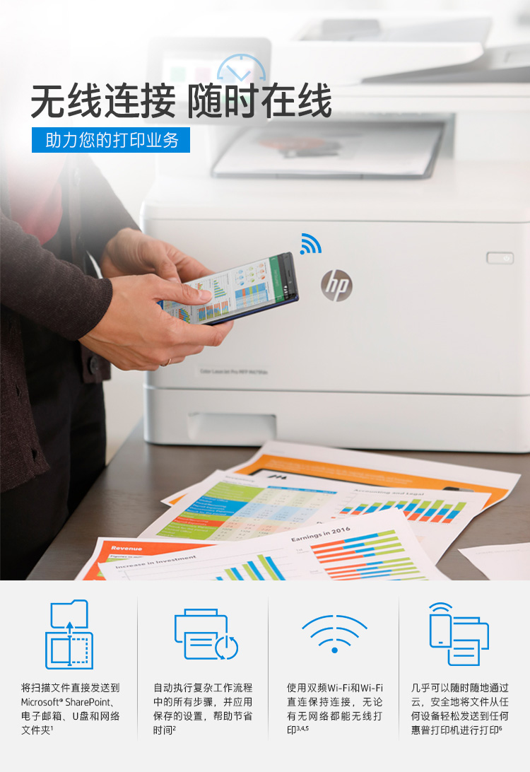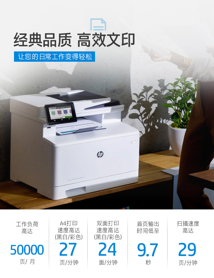 惠普454dn彩色激光打印機:有線網絡及雙面